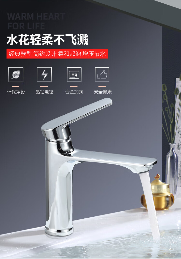 Moen home bathroom washbasin single-hole alloy copper faucet bathroom counter basin hot and cold two-in-one faucet alloy copper hot and cold faucet