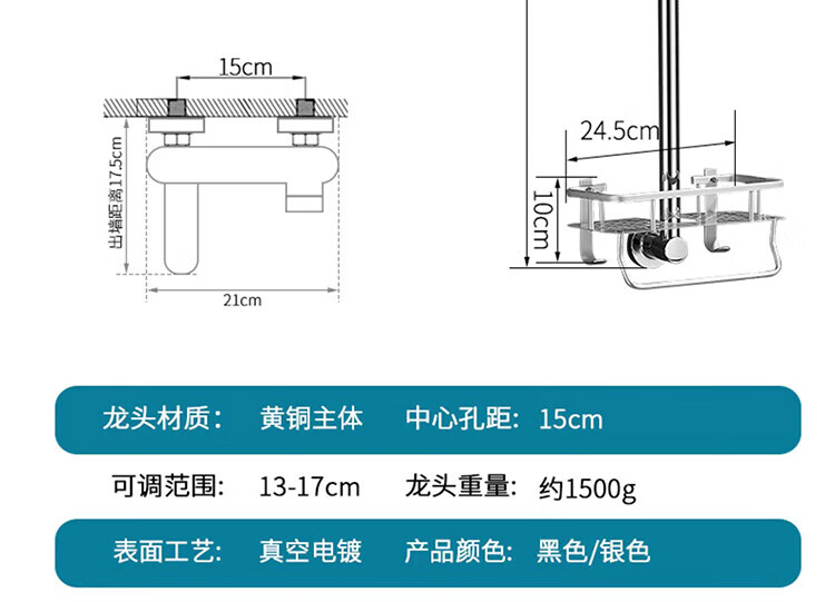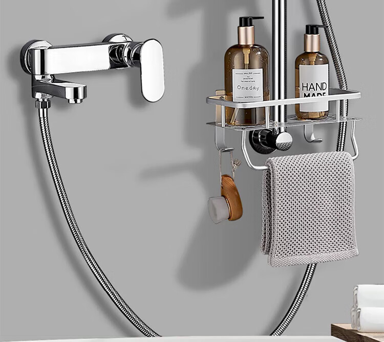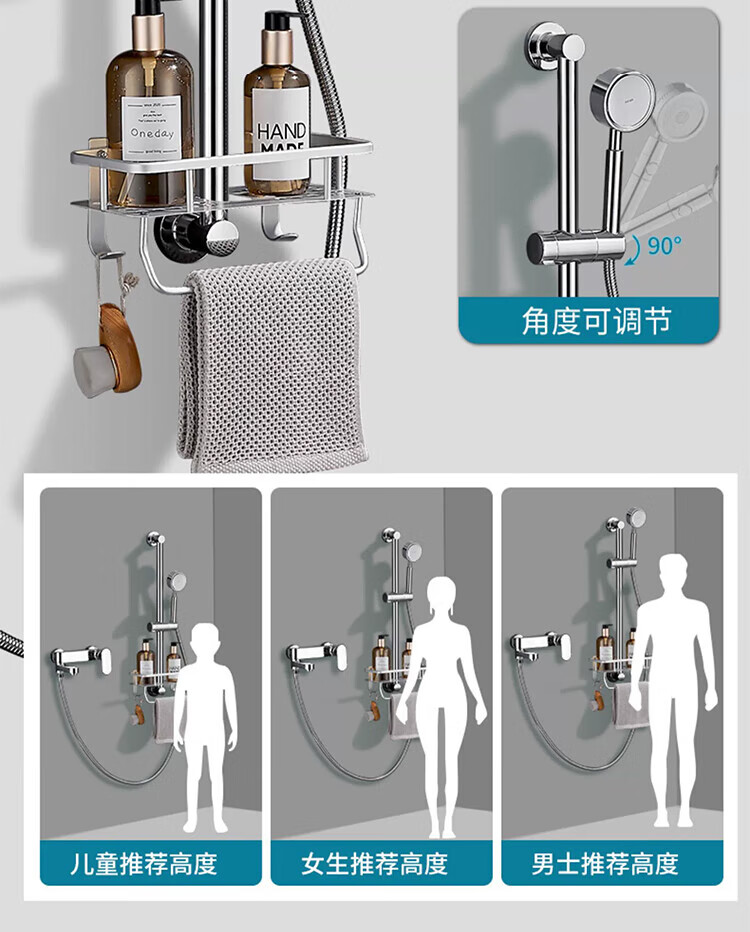 Moen shelf bathroom all-copper triple mixing valve shower shower set bathroom water heater switch bathtub faucet semi-automatic faucet 5-speed shower (5-piece set)