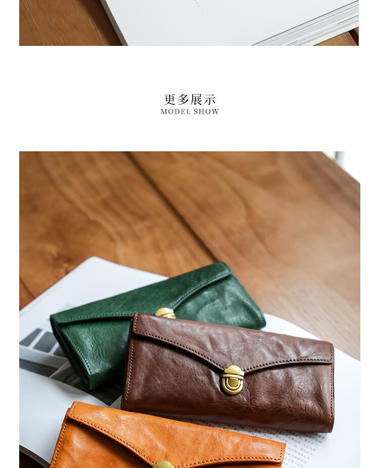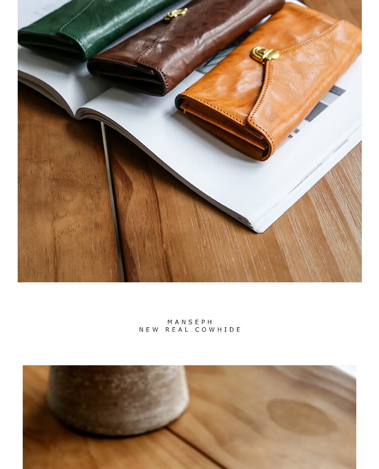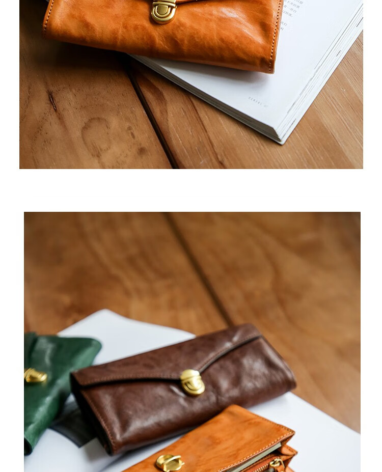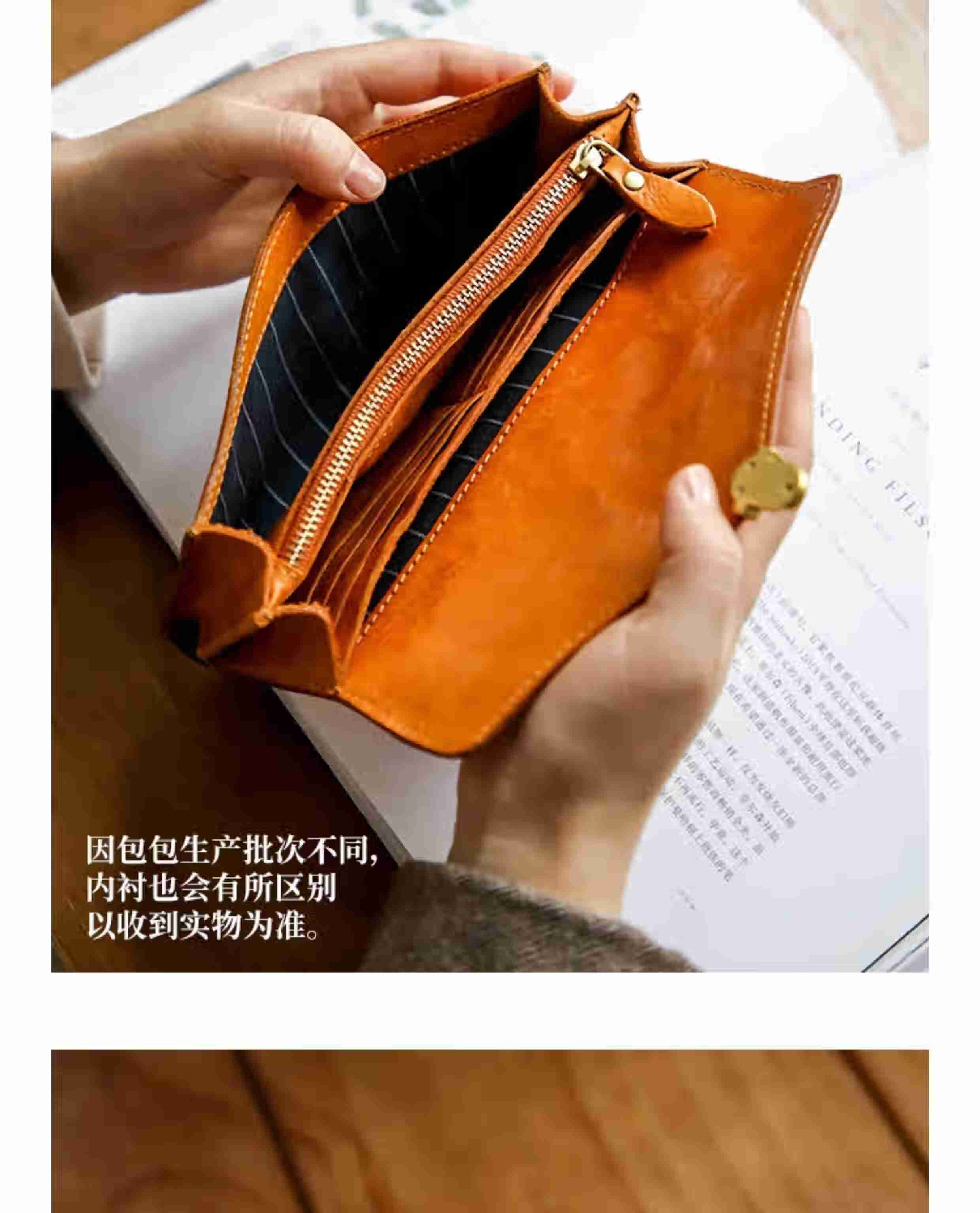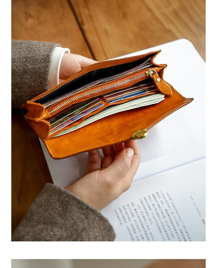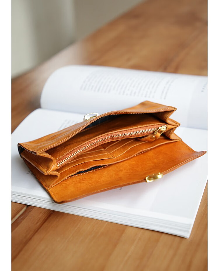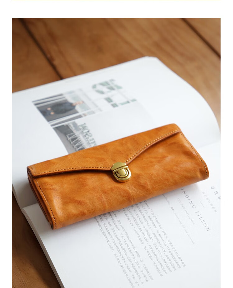 Woodpecker (TUCANO) Genuine Leather Retro Women's Long Wallet Top Layer Vegetable Tanned Cowhide Large Capacity Lock Handheld Horizontal Multi-Card Slot Wallet Sunset Yellow