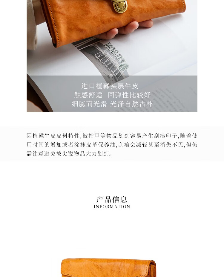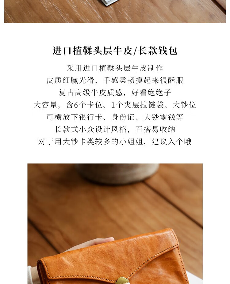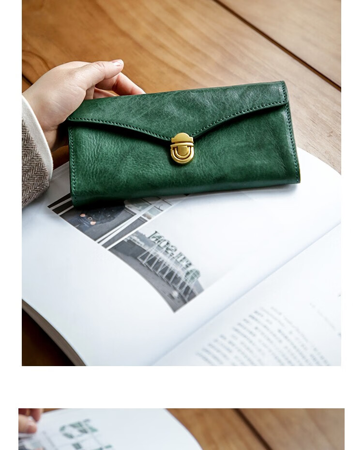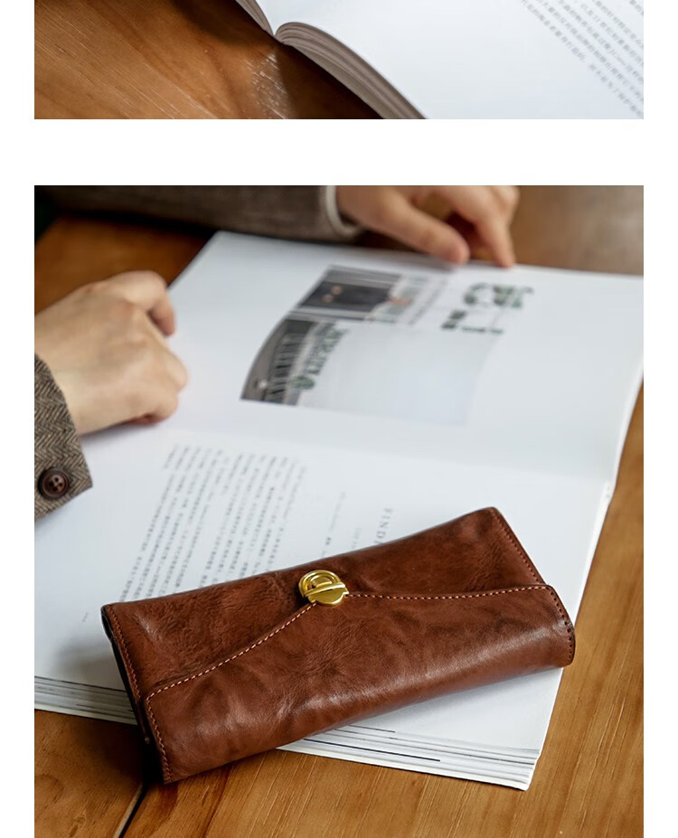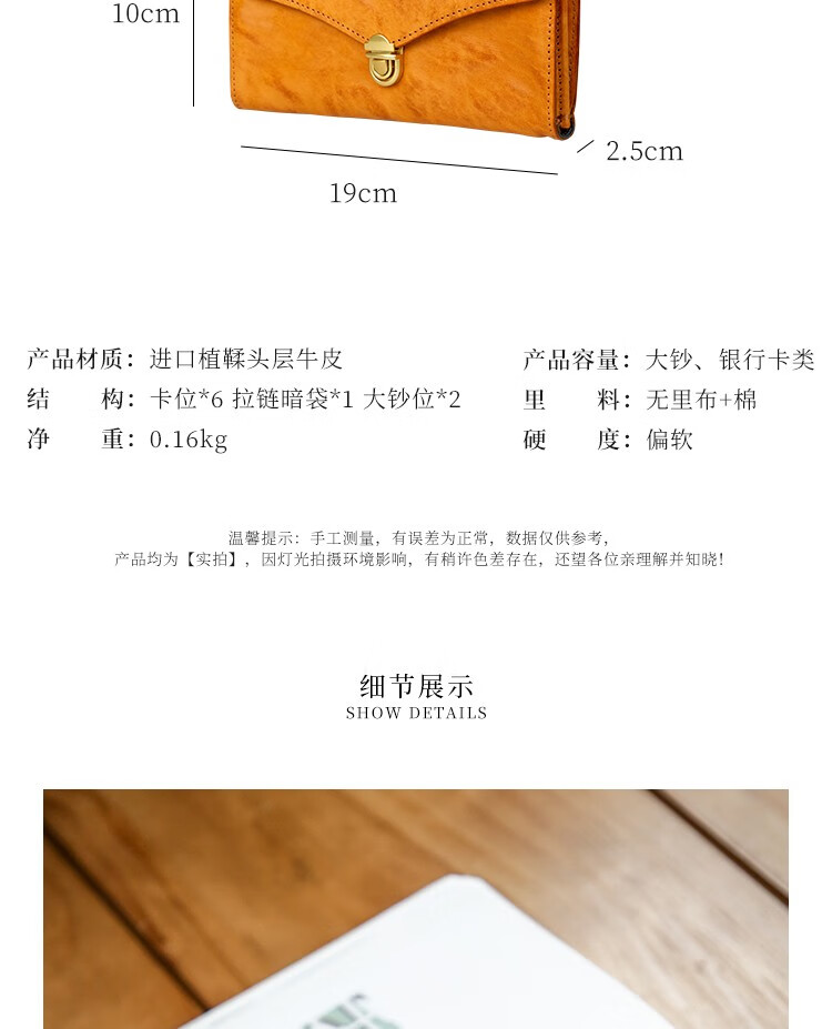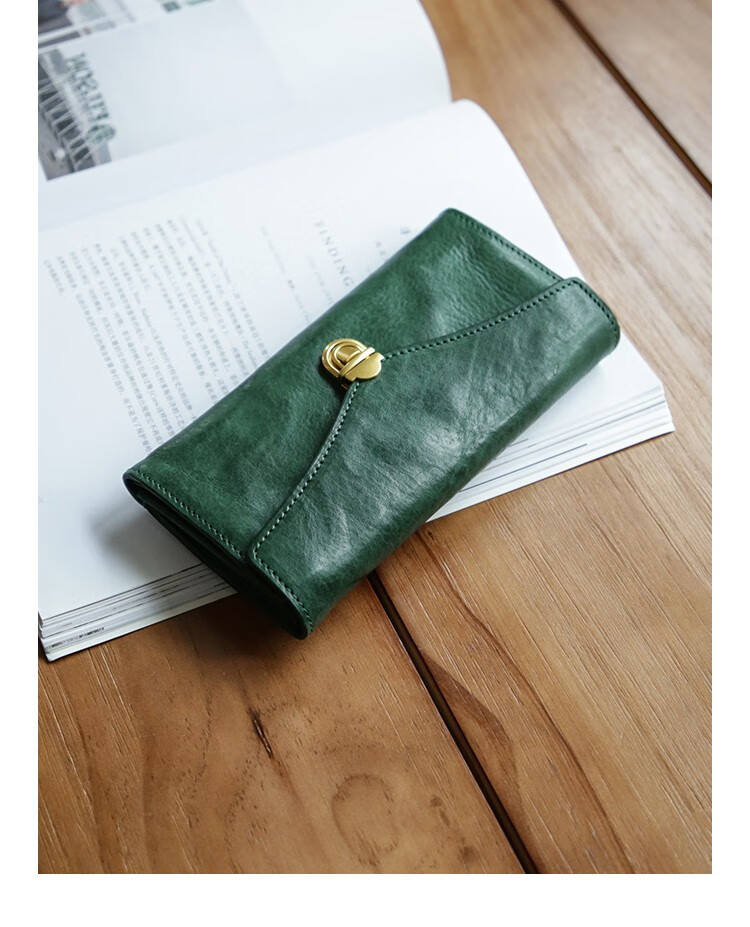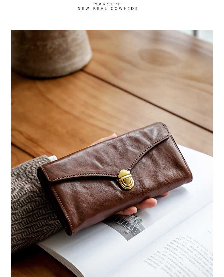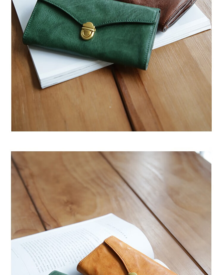 Woodpecker (TUCANO) Genuine Leather Retro Women's Long Wallet Top Layer Vegetable Tanned Cowhide Large Capacity Lock Handheld Horizontal Multi-Card Slot Wallet Sunset Yellow