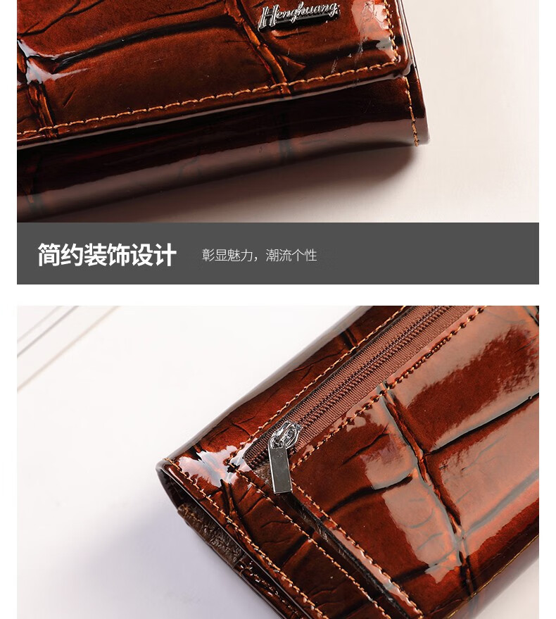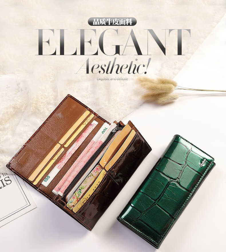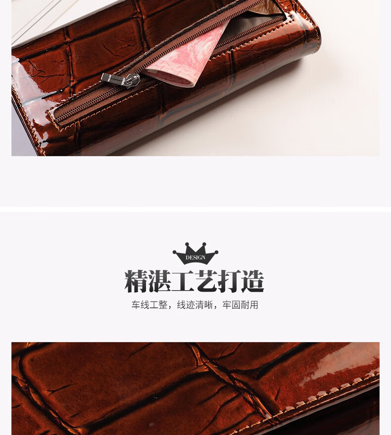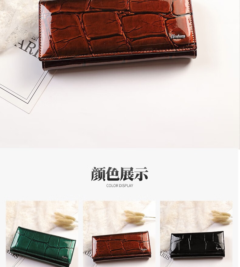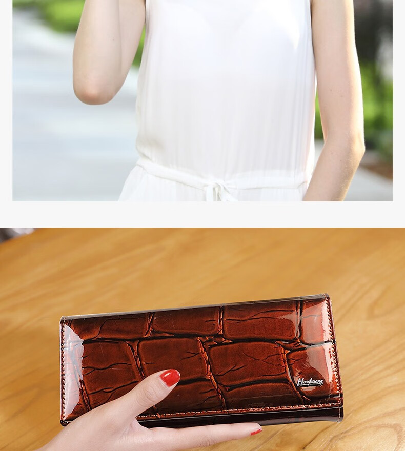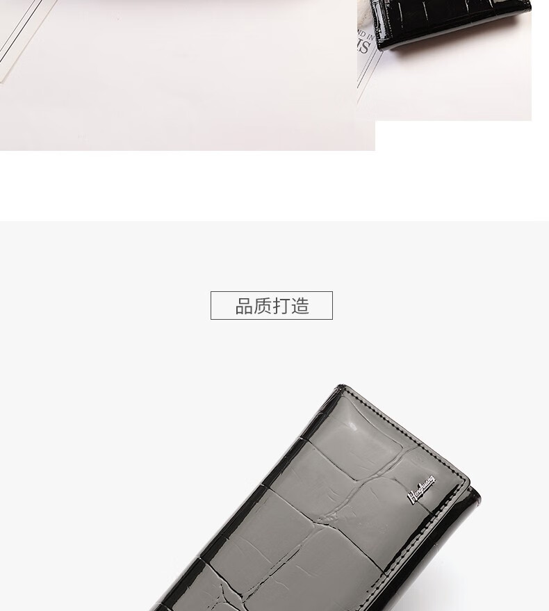 Woodpecker (TUCANO) 2025 New Genuine Leather Long Hand Wallet Women's Bright Leather Multi-Card Slot Folding Large Capacity Wallet Enlarges Mobile Phone Black