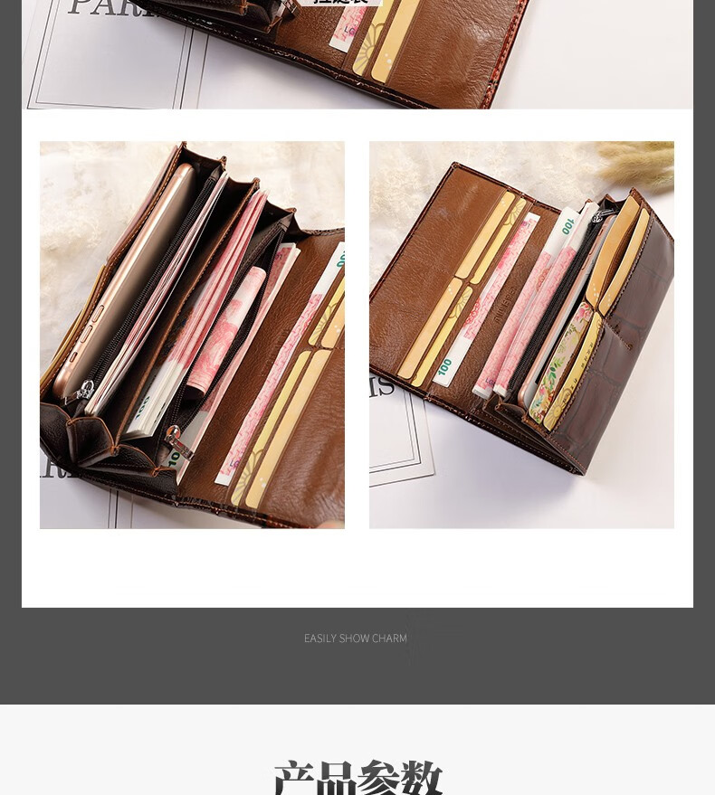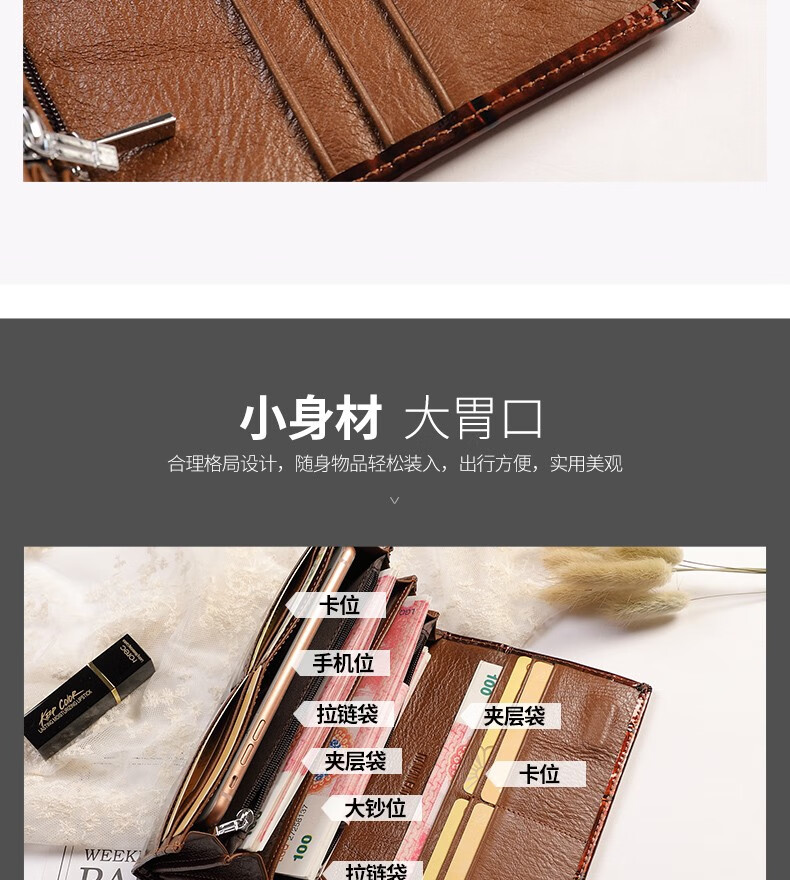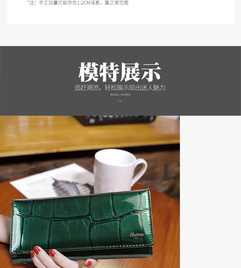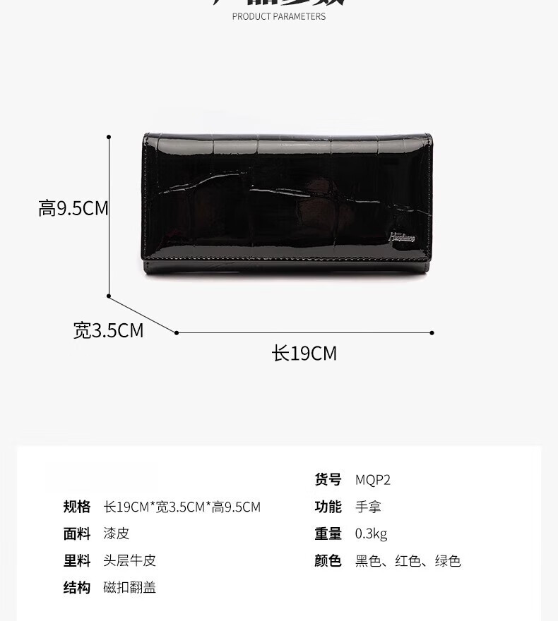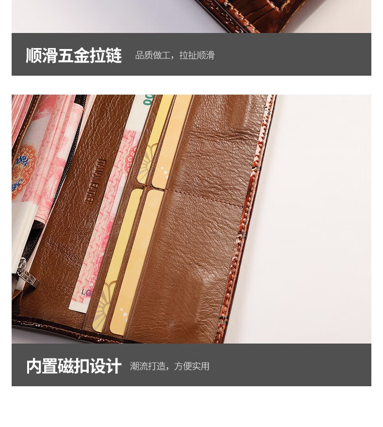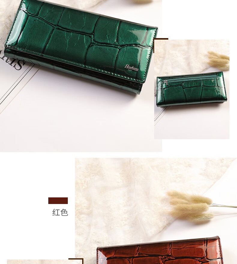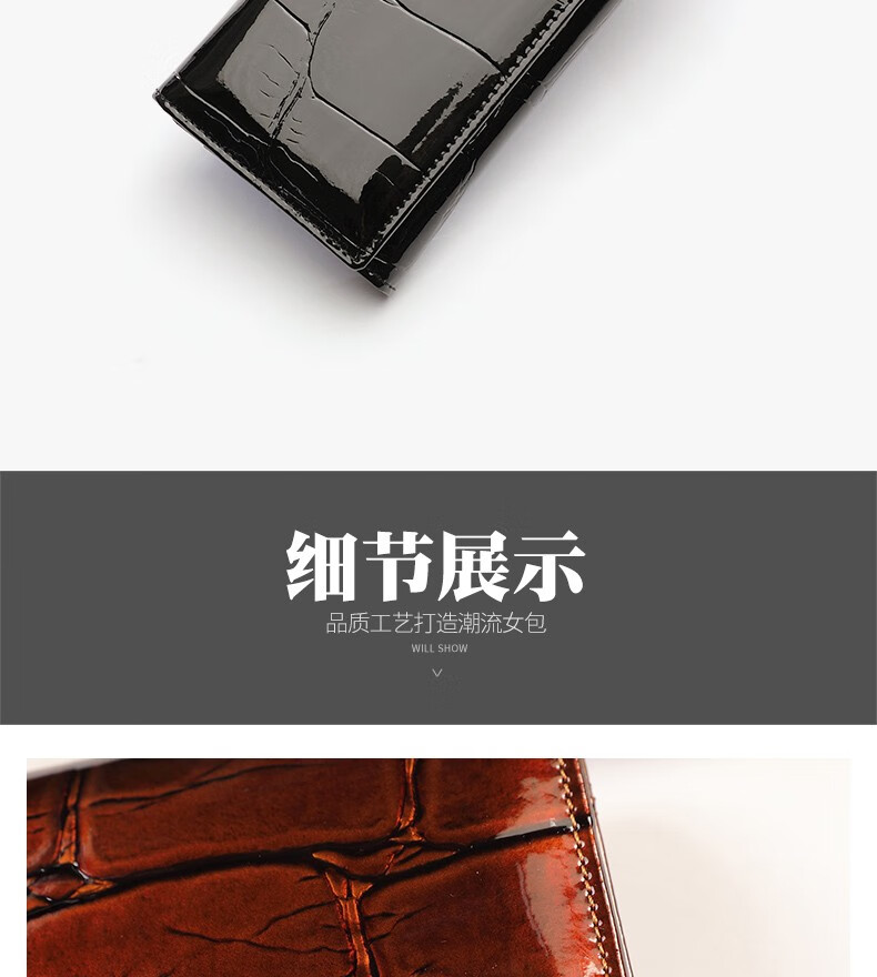 Woodpecker (TUCANO) 2025 New Genuine Leather Long Hand Wallet Women's Bright Leather Multi-Card Slot Folding Large Capacity Wallet Enlarges Mobile Phone Black