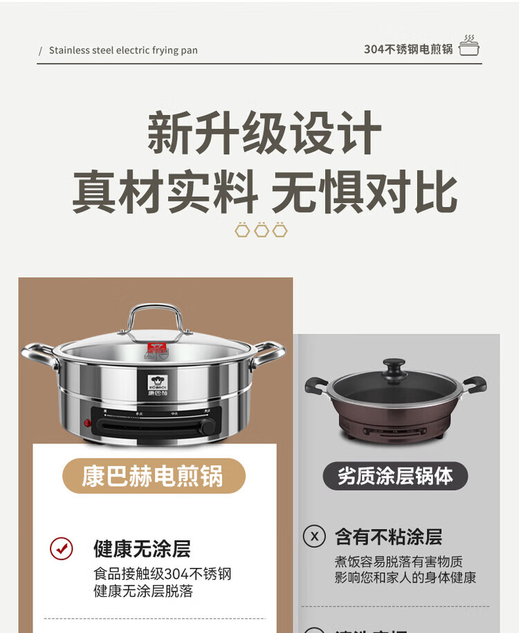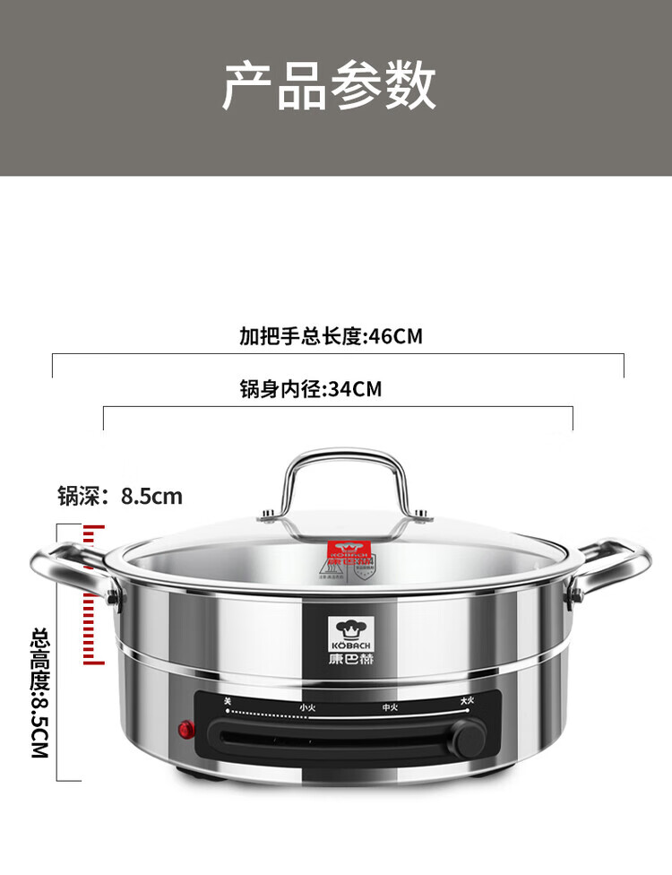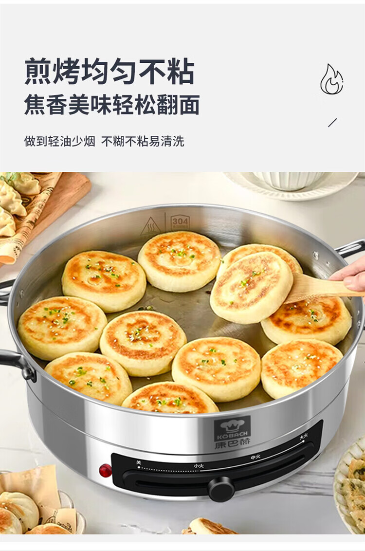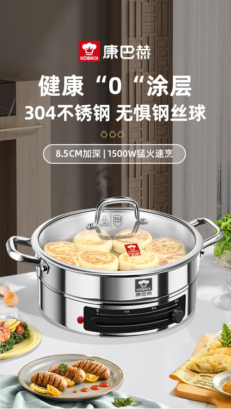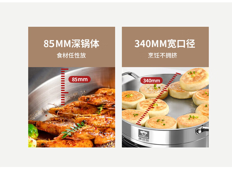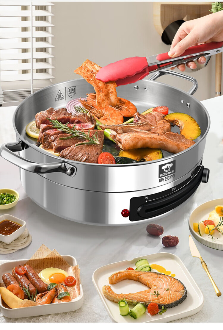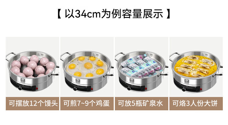 Kangbach stainless steel electric steamer new multi-function electric frying pan household deepened and enlarged electric pancake pan 34CM-deepened 8.5CM multi-function electric steamer + 2 steaming 1cm