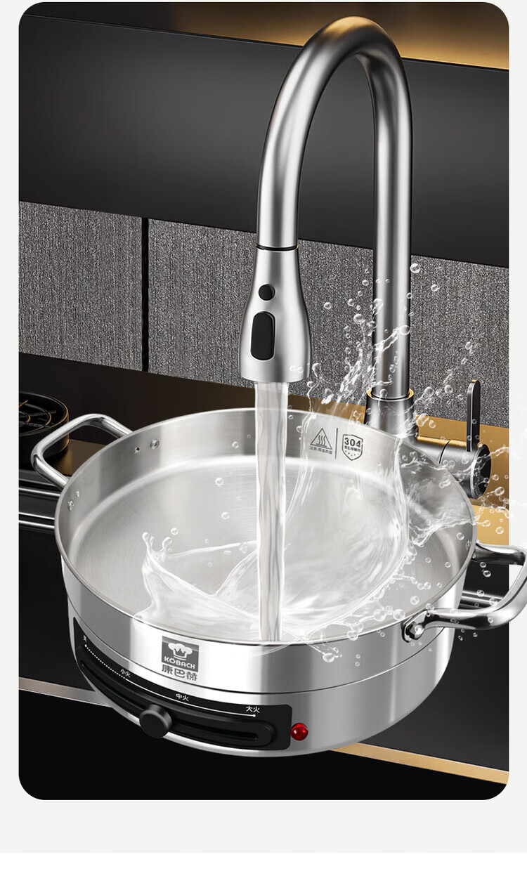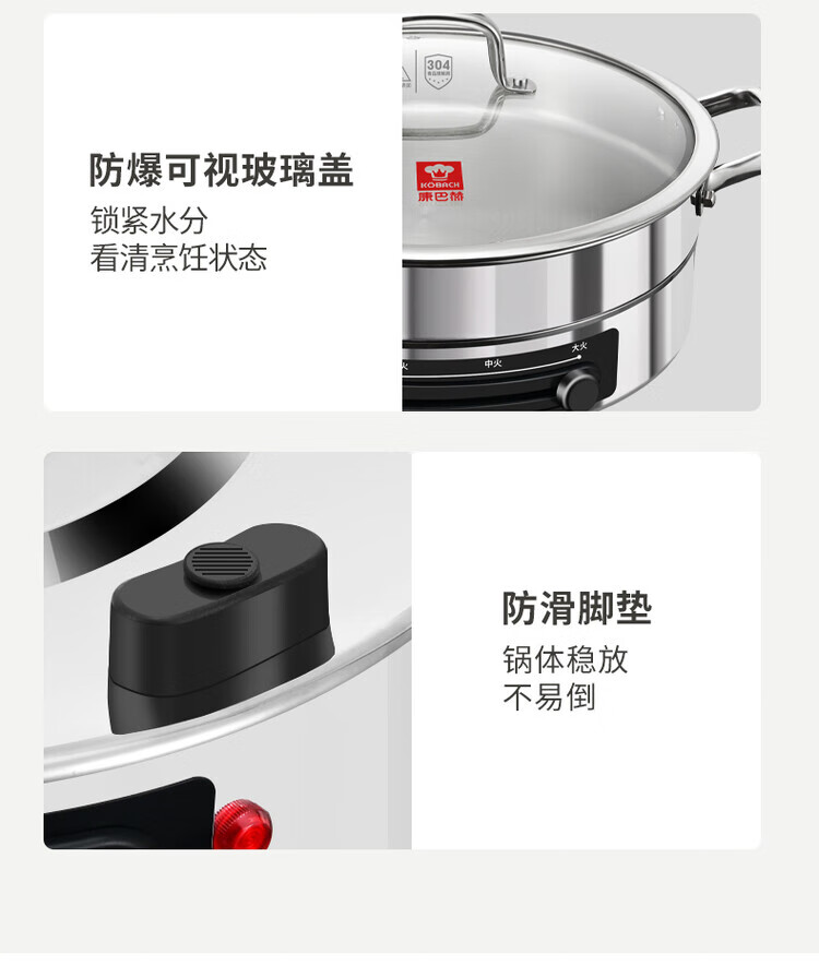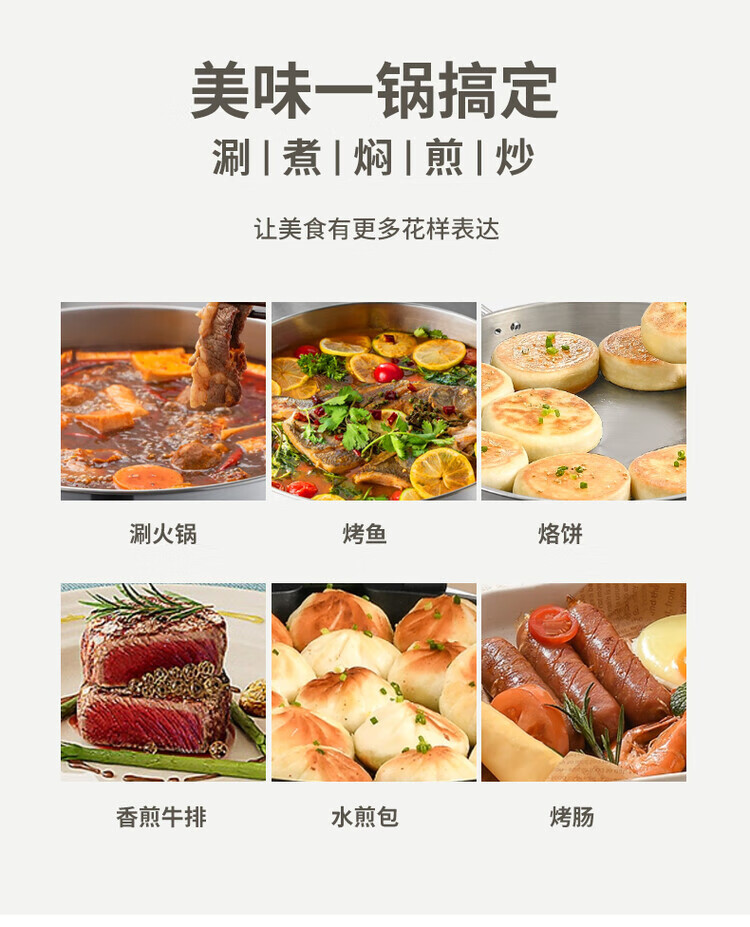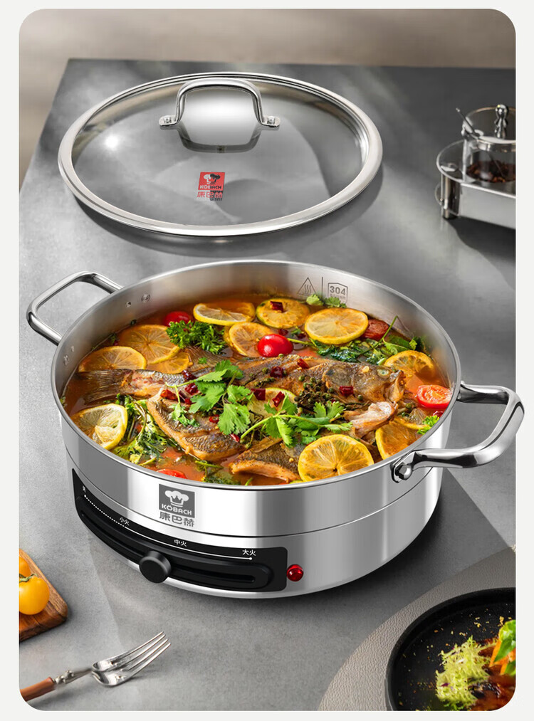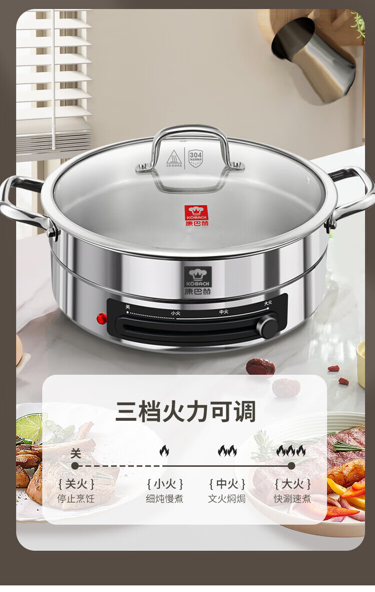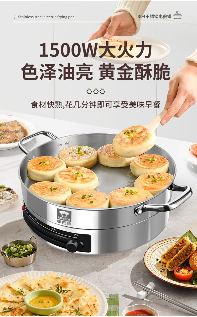 Kangbach stainless steel electric steamer new multi-function electric frying pan household deepened and enlarged electric pancake pan 34CM-deepened 8.5CM multi-function electric steamer + 2 steaming 1cm