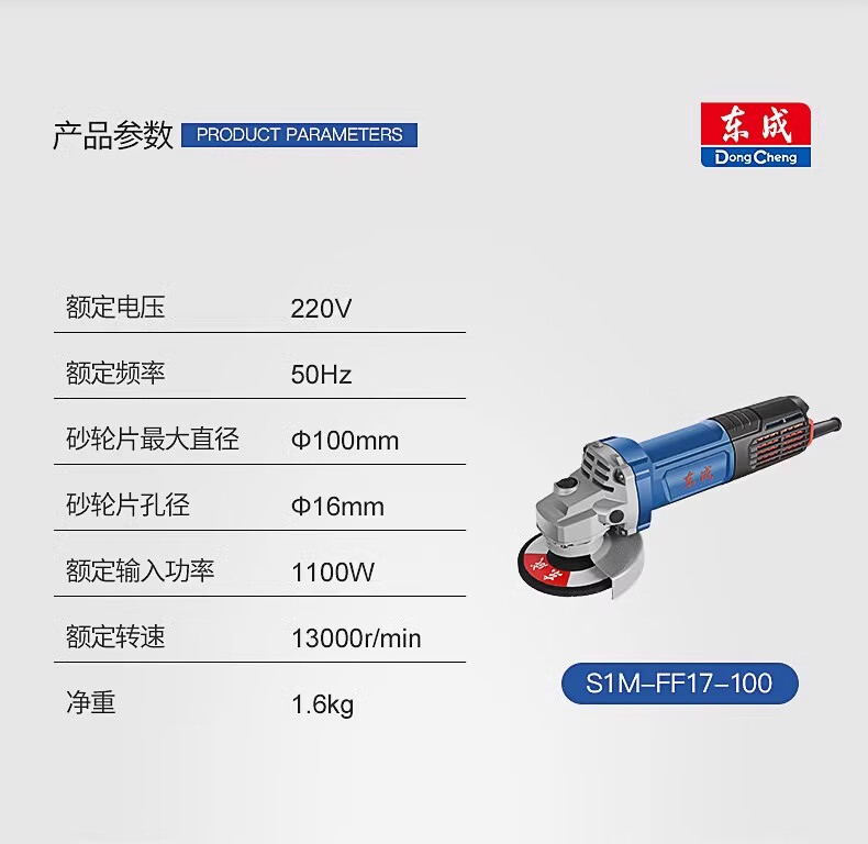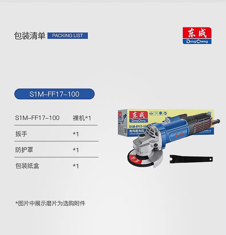 Dongcheng angle grinder high power 1100W angle grinder multi-function cutting machine household small hand grinding wheel grinding and polishing machine FF17-100 official standard configuration