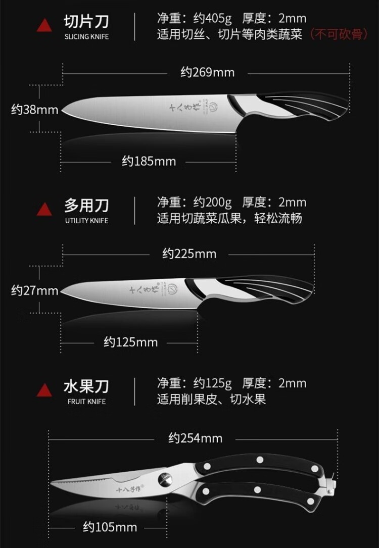 Shibazizuo Xinjiang Kefa Household Set Combination Bone Chopping Knife Slicing Knife Small Kitchen Knife Fruit Knife Stainless Steel Kitchen Knife Set Seven-piece Set