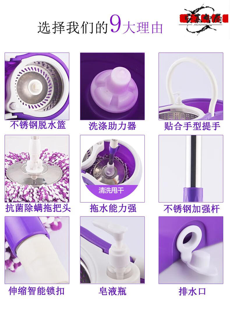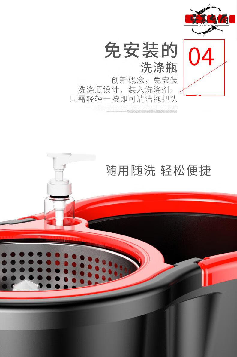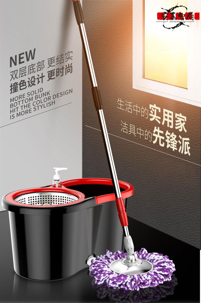 Japan imported high-quality mop for home use, one-mop, hand-wash-free 2025 with bucket David Rotary Lazy Mop God Khaki (enhanced and thickened version) collection = 3 pieces x metal basket x reinforced rod + stainless steel plate