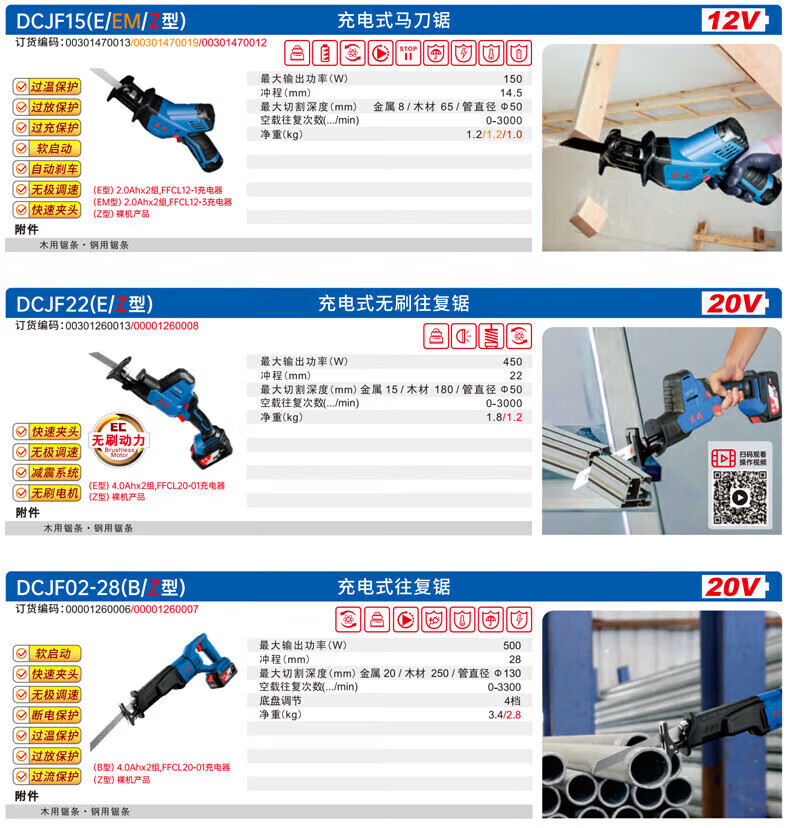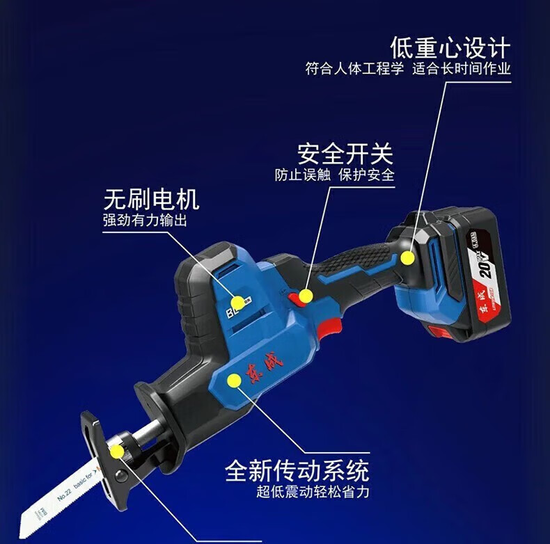 Dongcheng saber saw reciprocating saw lithium battery rechargeable brushless wood metal plastic bone DCJF15/22/28 cutting saw DCJF02-28 bare metal without battery charger