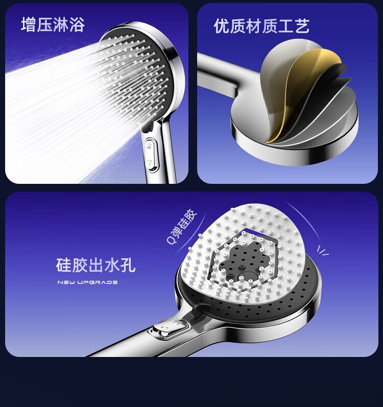 German quality supercharged shower head shower bath pressurized faucet high pressure flower sun set shower head gun gray set 5 five-speed supercharged shower head + 2 meters anti-