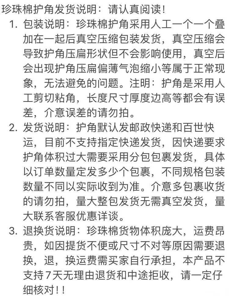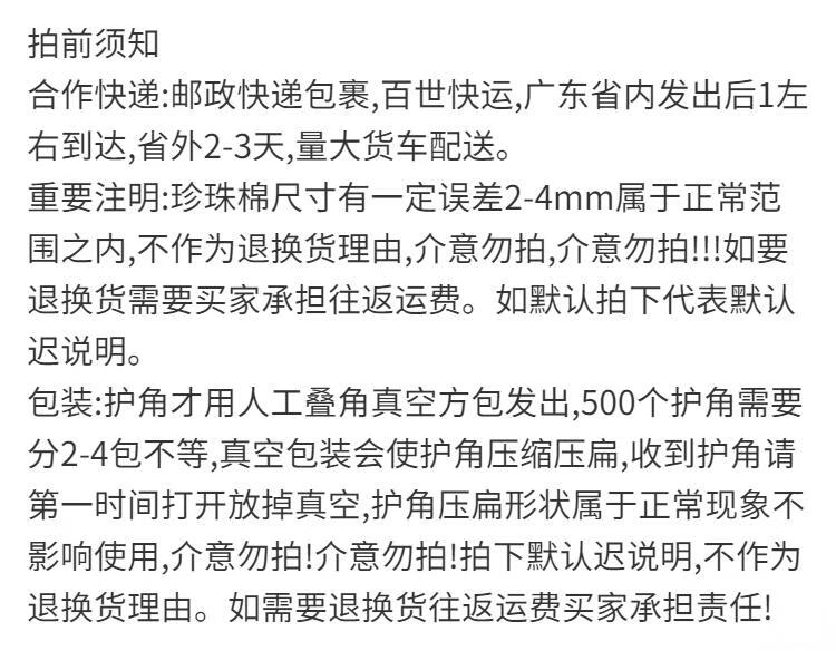 Corner protector U-shaped anti-collision U-shaped right angle Pearl cotton picture frame decoration photo frame packaging foam pearl cotton All the following options are packaged and shipped after vacuum compression