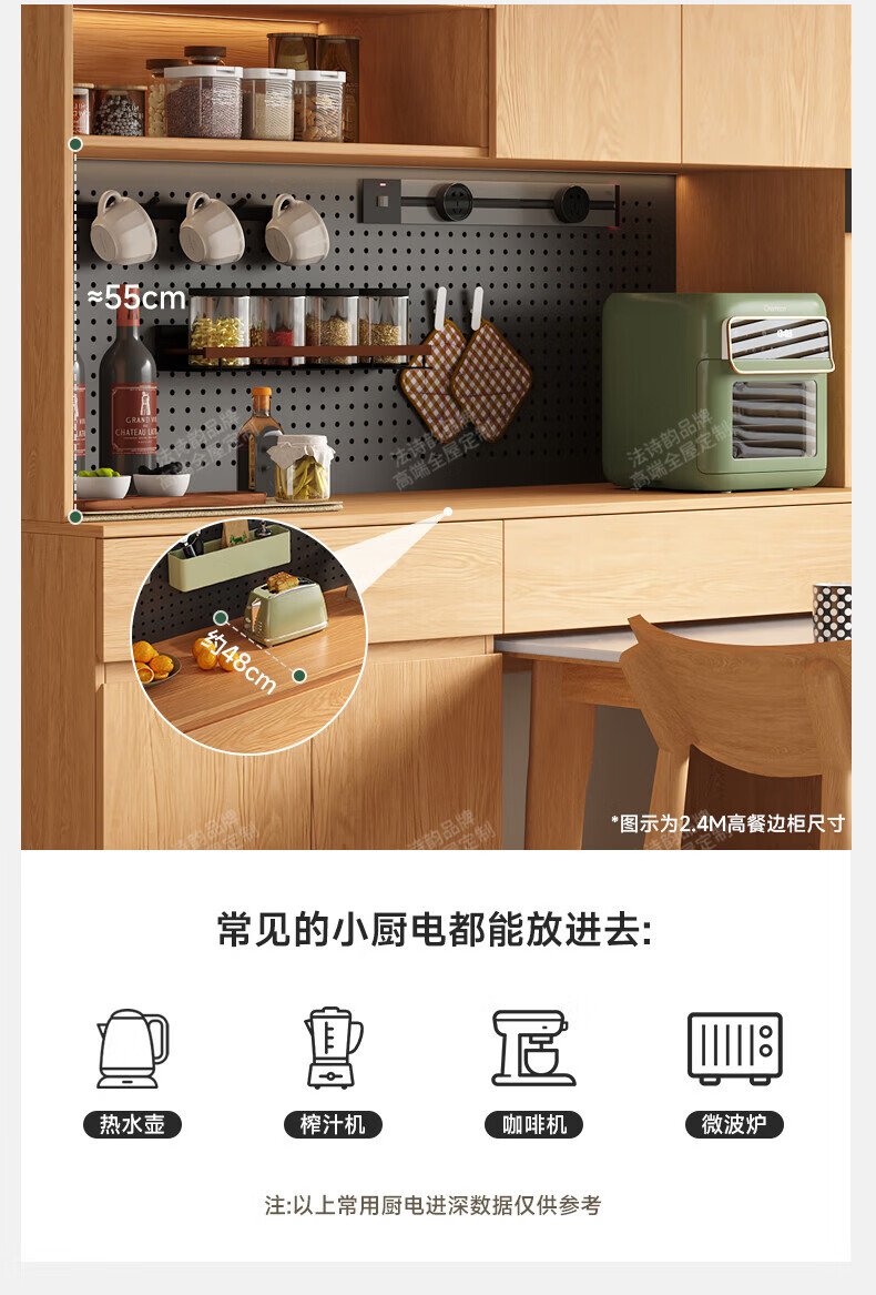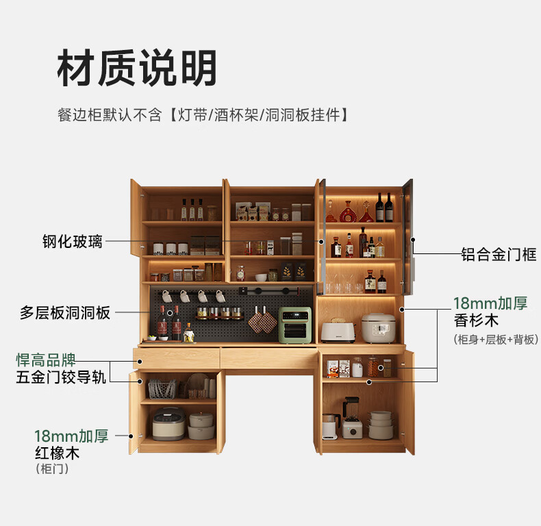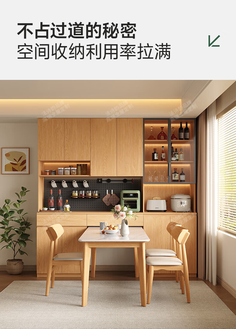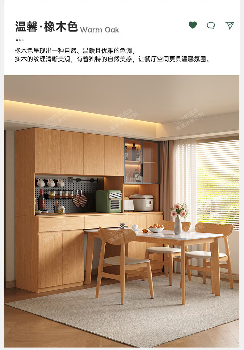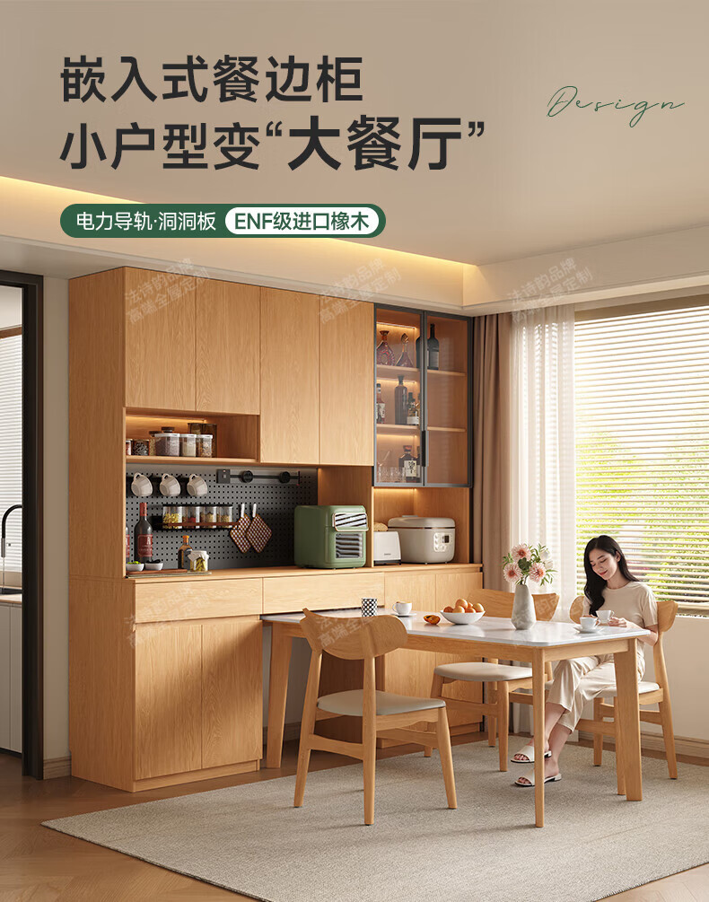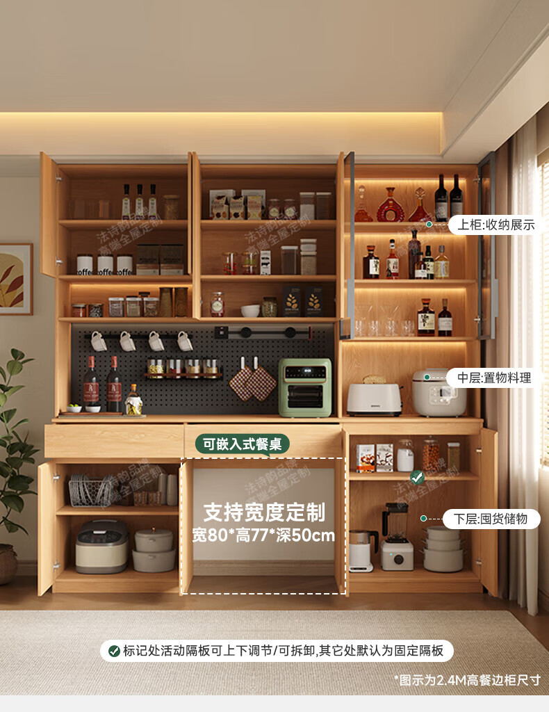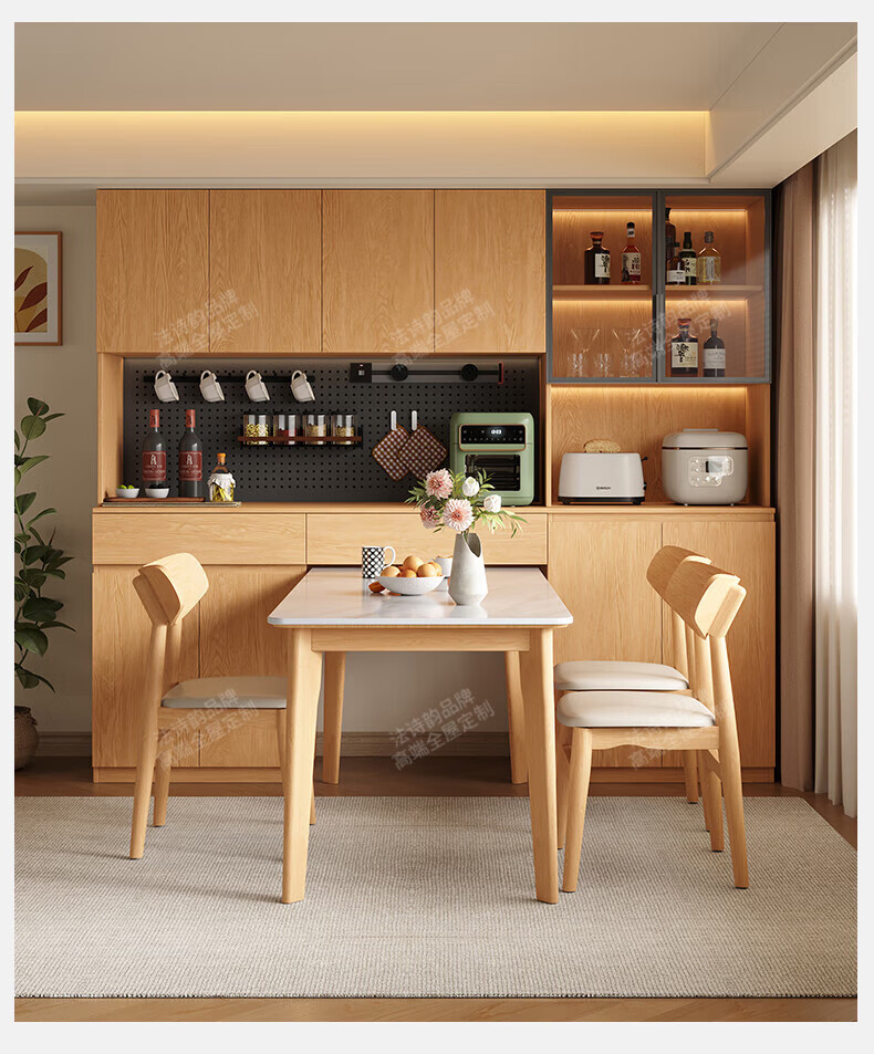French poetry custom-made solid wood sideboard wine cabinet against the wall integrated dining table embedded oak tempered glass cupboard cabinet 2.0 meters long * 2.4 meters high (six-door sideboard) Perforated board and double-hole track socket are provided by default