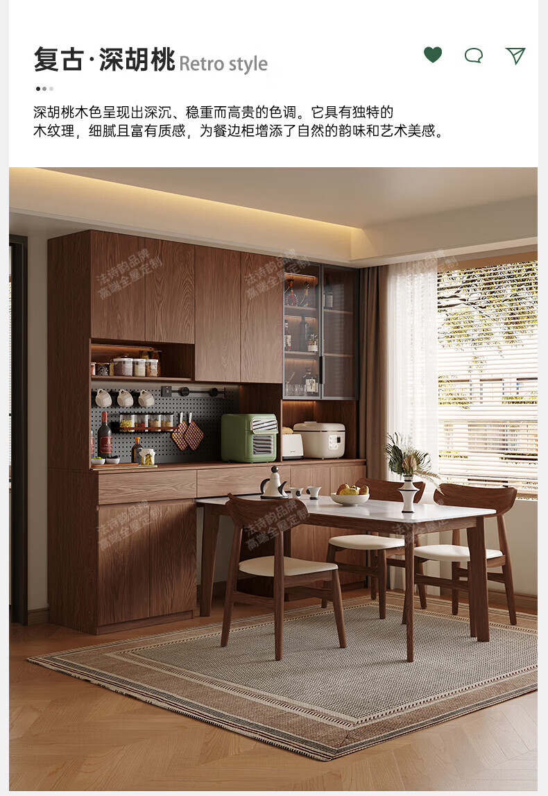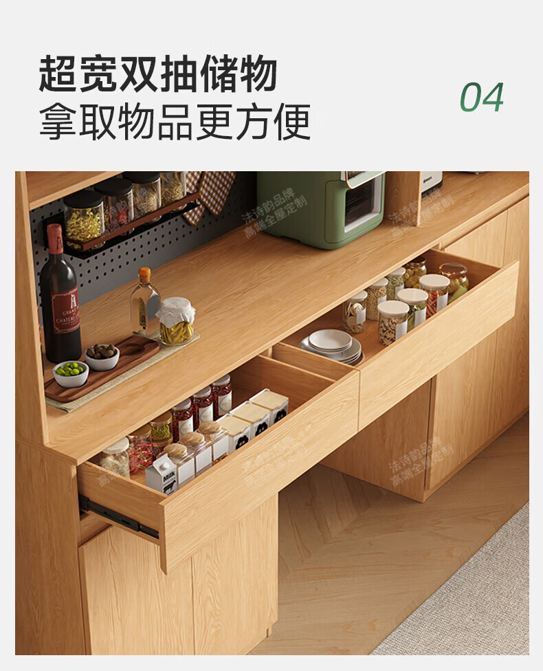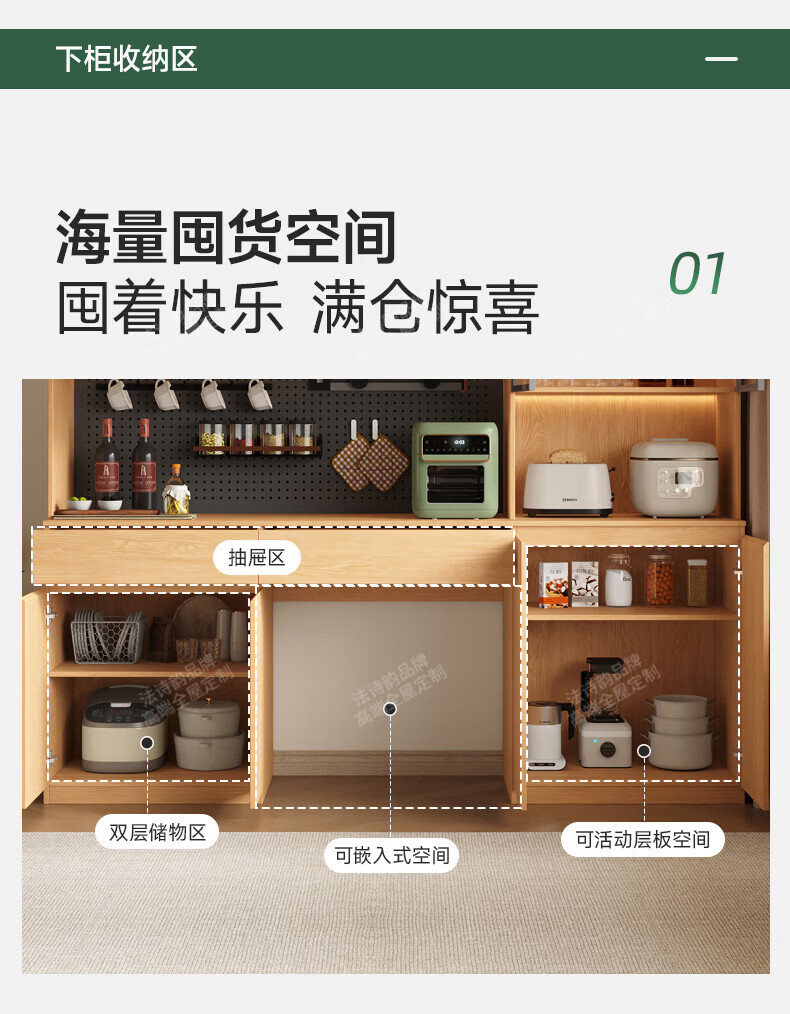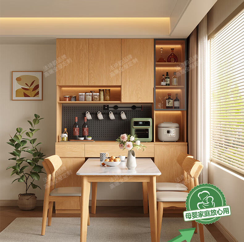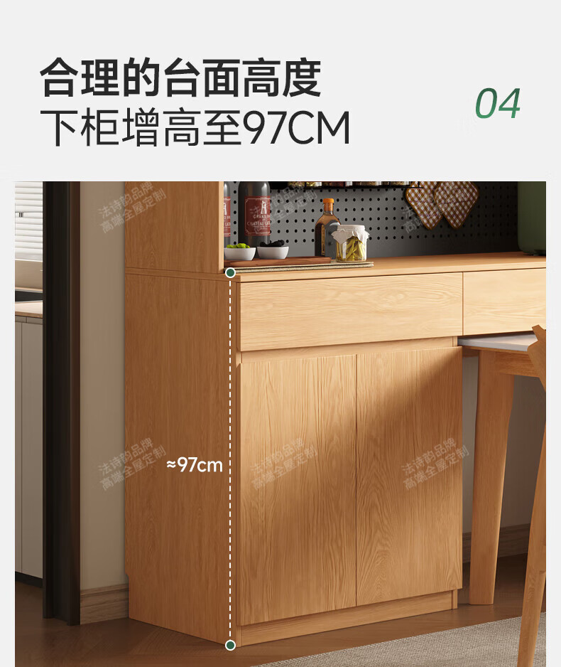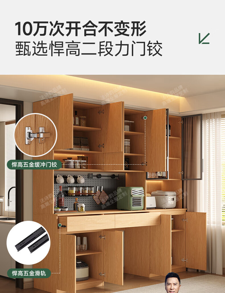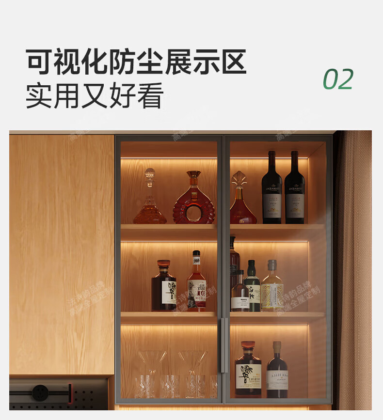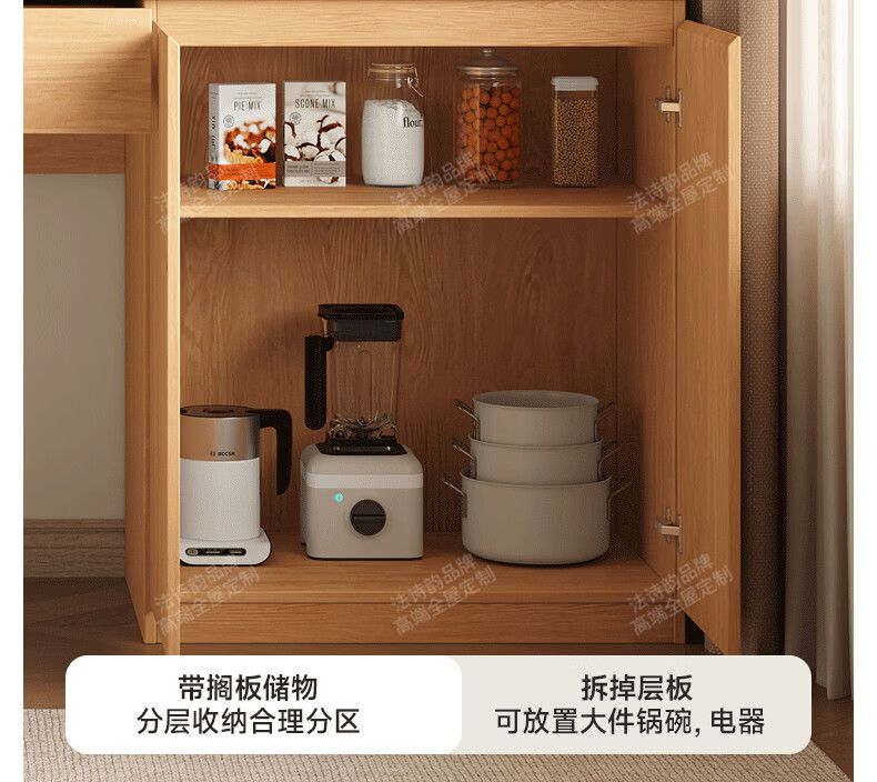 French poetry custom-made solid wood sideboard wine cabinet against the wall integrated dining table embedded oak tempered glass cupboard cabinet 2.0 meters long * 2.4 meters high (six-door sideboard) Perforated board and double-hole track socket are provided by default