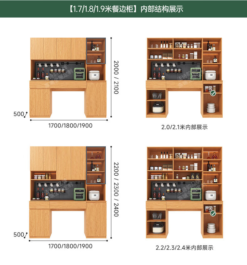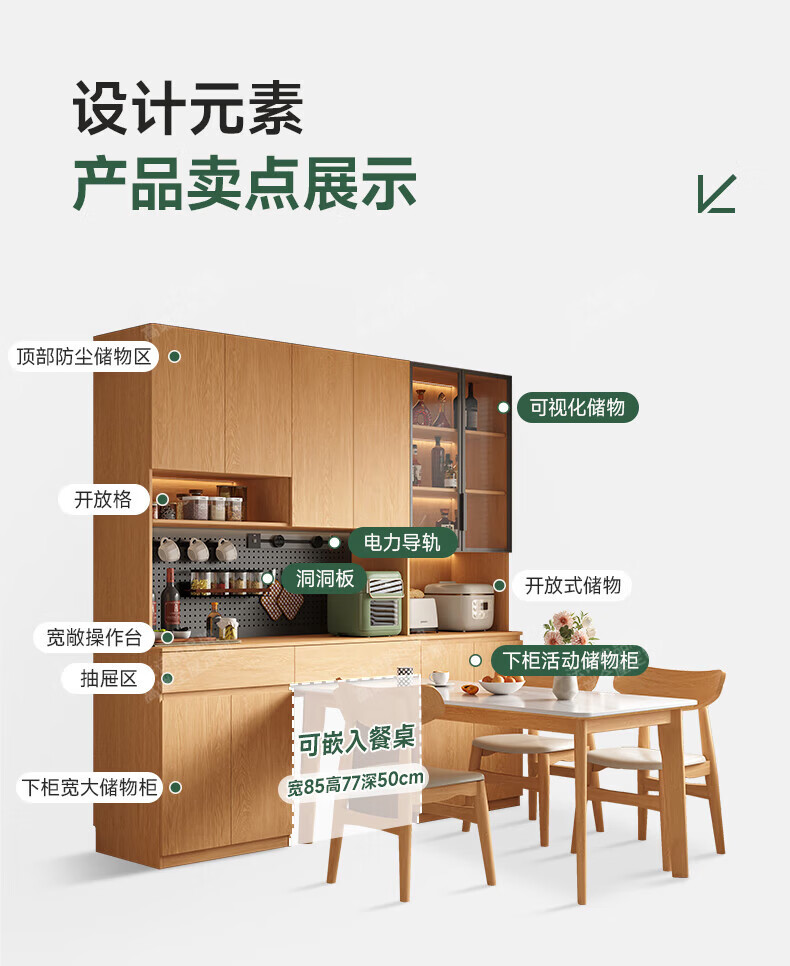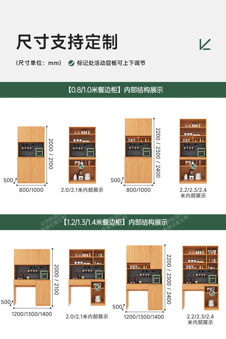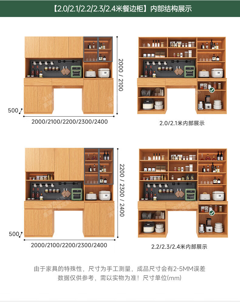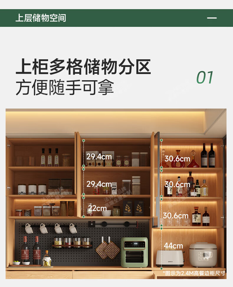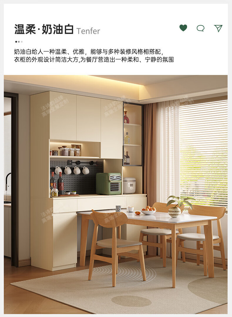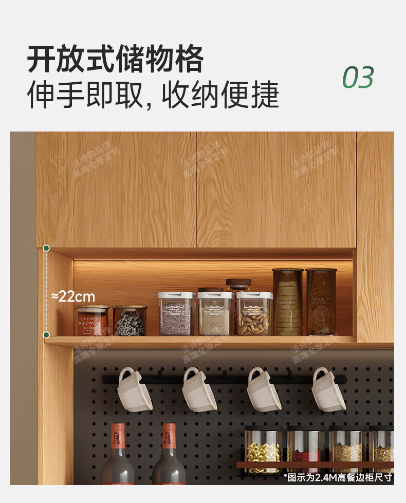 French poetry custom-made solid wood sideboard wine cabinet against the wall integrated dining table embedded oak tempered glass cupboard cabinet 2.0 meters long * 2.4 meters high (six-door sideboard) Perforated board and double-hole track socket are provided by default