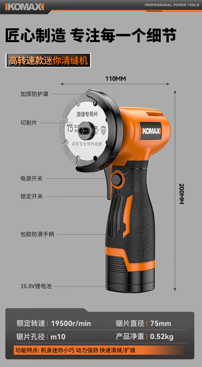 Comex electric seam cleaning machine, cutting machine, seam cleaning cone, seam beauty tool, tile cleaning and slotting machine, floor tile gap groove machine, high-speed mini seam cleaning machine, standard configuration, 1 battery, 1 charge + 2 seam cleaning tablets