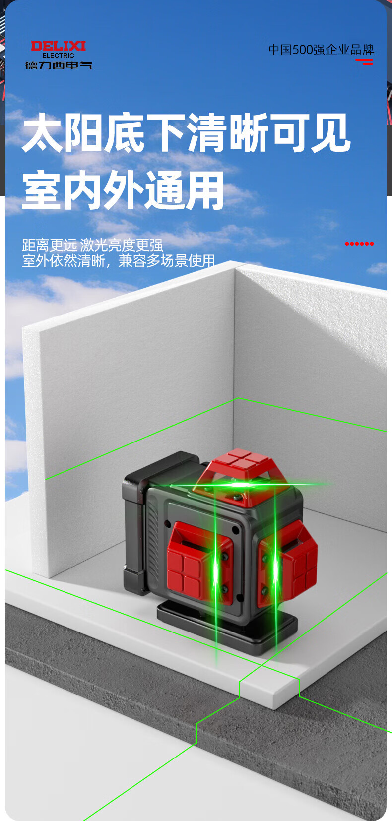 Delixi Electric infrared level meter high-precision strong light thin line automatic leveling laser outdoor green and blue 12 lines outdoor outdoor high-precision green light 12 lines Big Mac dual electric standard