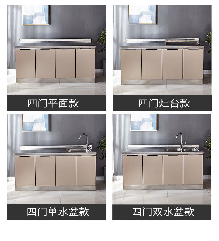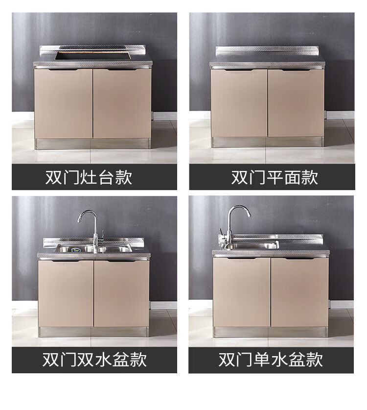 Steel cabinets, stainless steel kitchen cabinets, household sink cabinets, overall economical stove cabinets, kitchen cabinets for rent, 0.9m double doors and double basins (optional left and right)