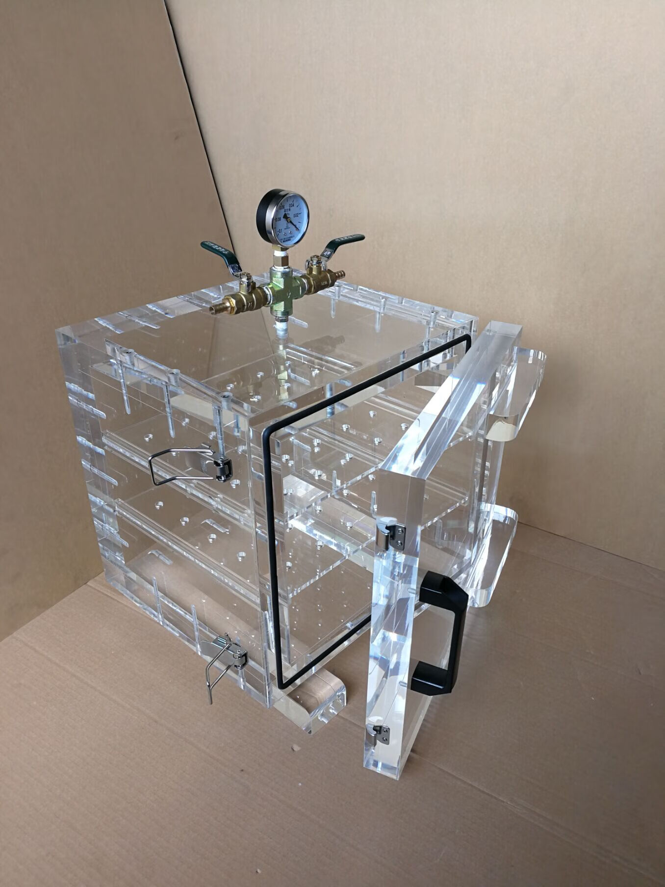 Kezitu spot high negative pressure vacuum drying box transparent industrial box AB defoaming silicone resin degassing barrel school experiment high transparent inner diameter 200*200*200*20mm air supply