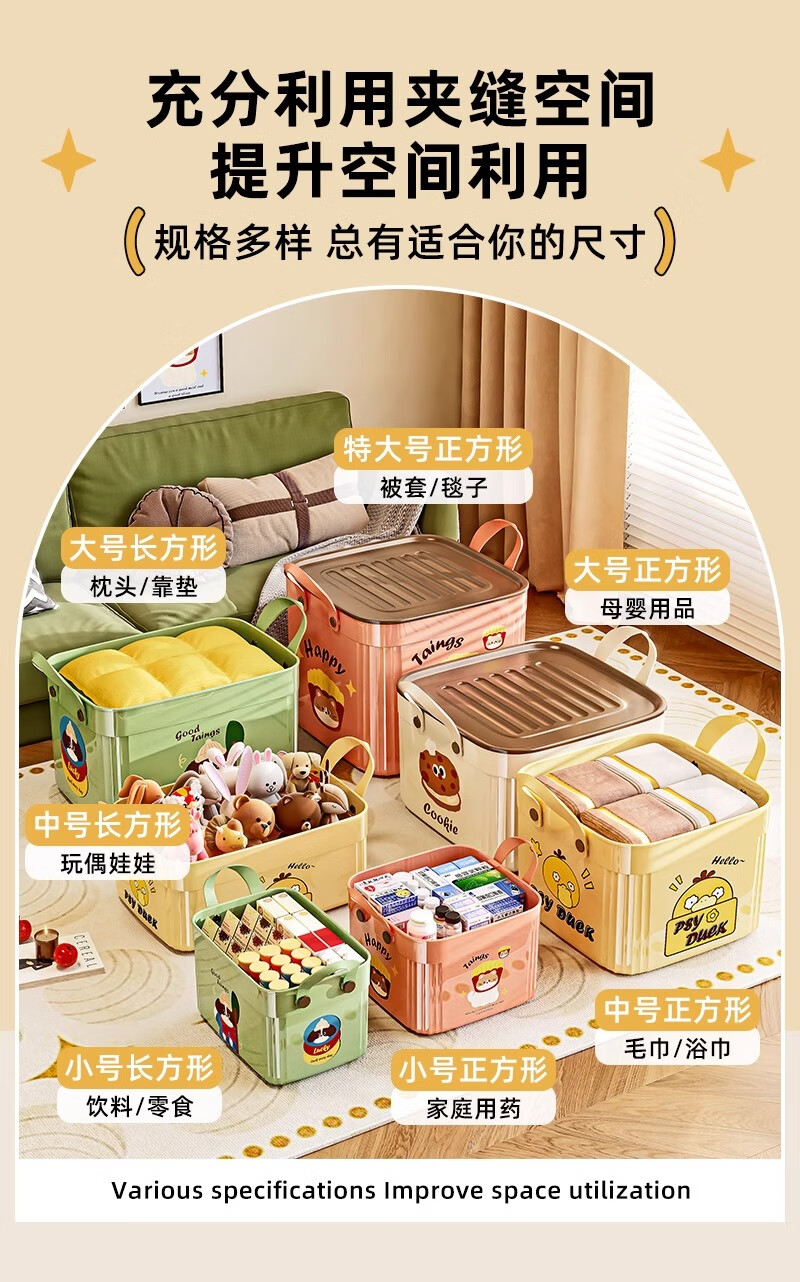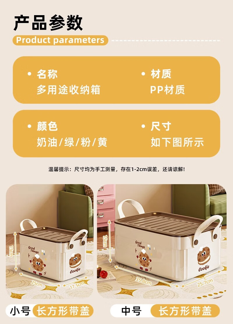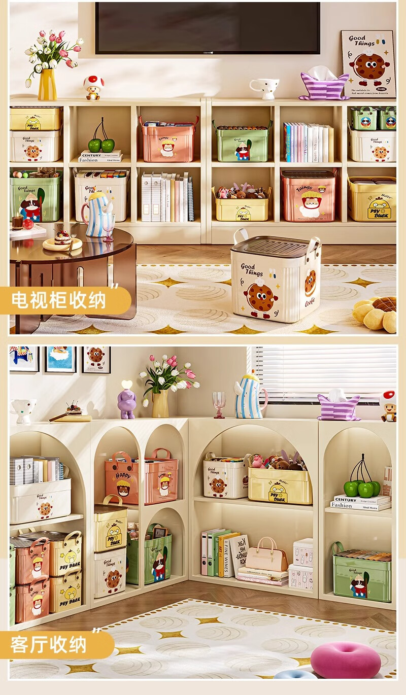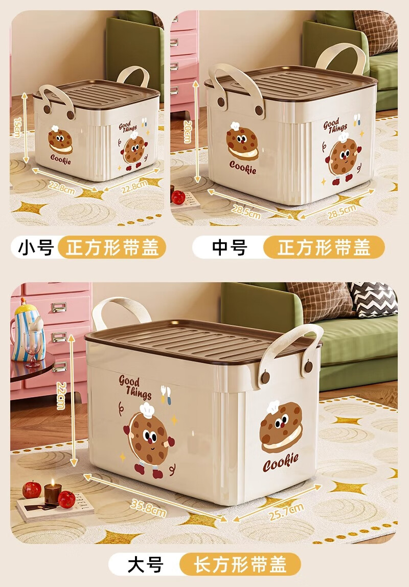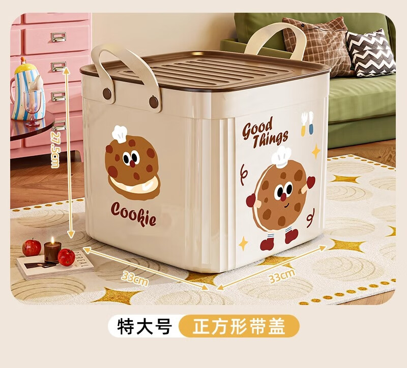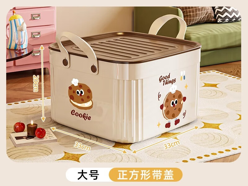 Naming desktop storage box with lid sundry storage box multi-functional snack toy storage basket wardrobe living room cute cartoon square cream cookie-extra large