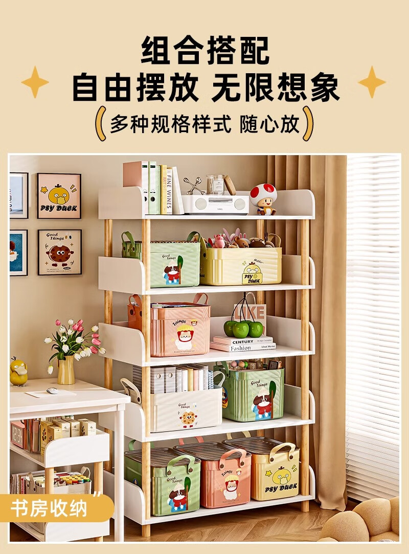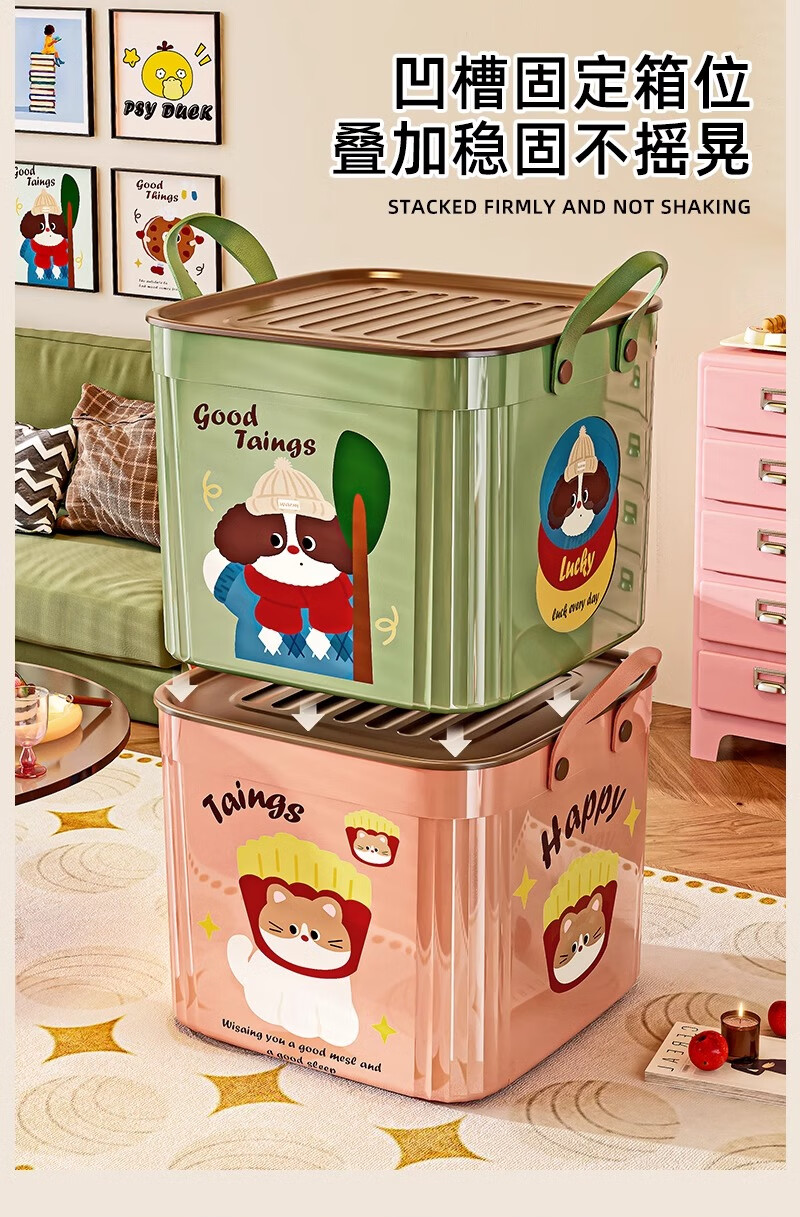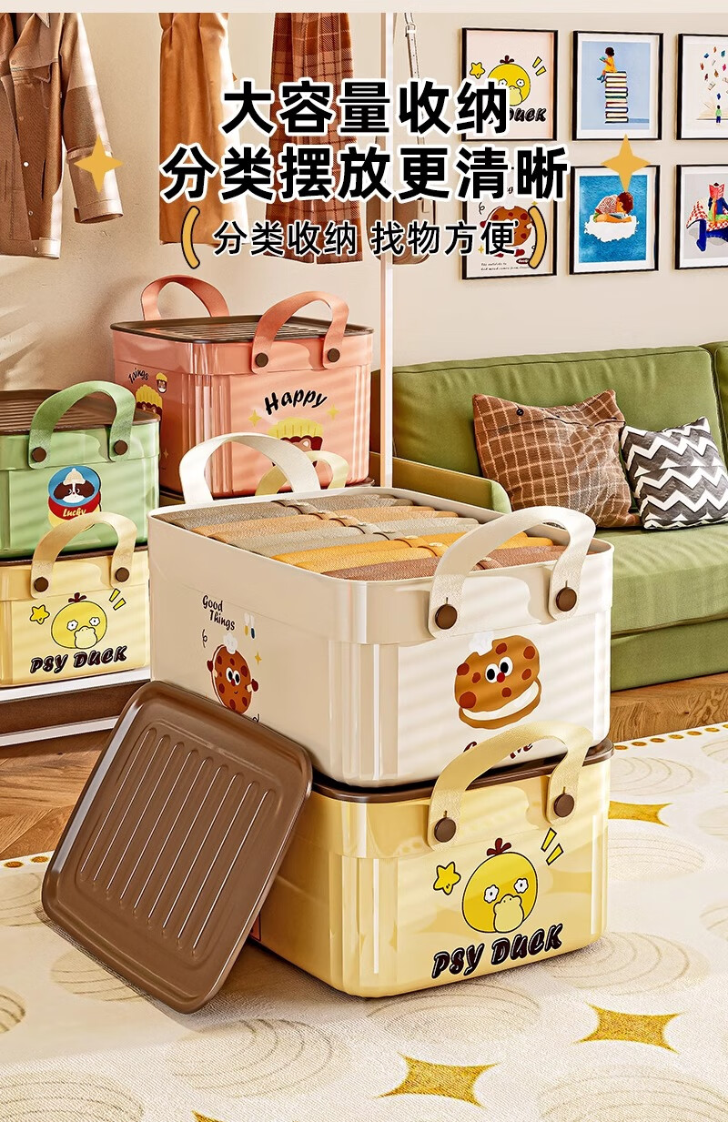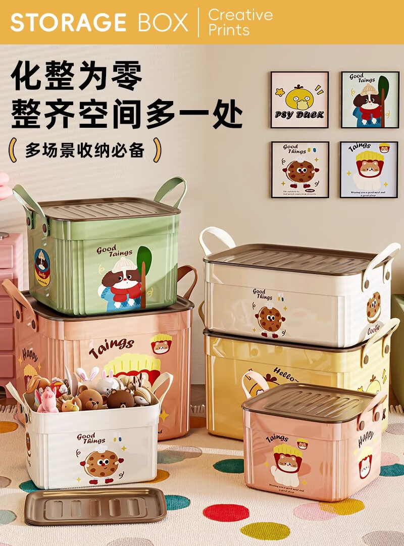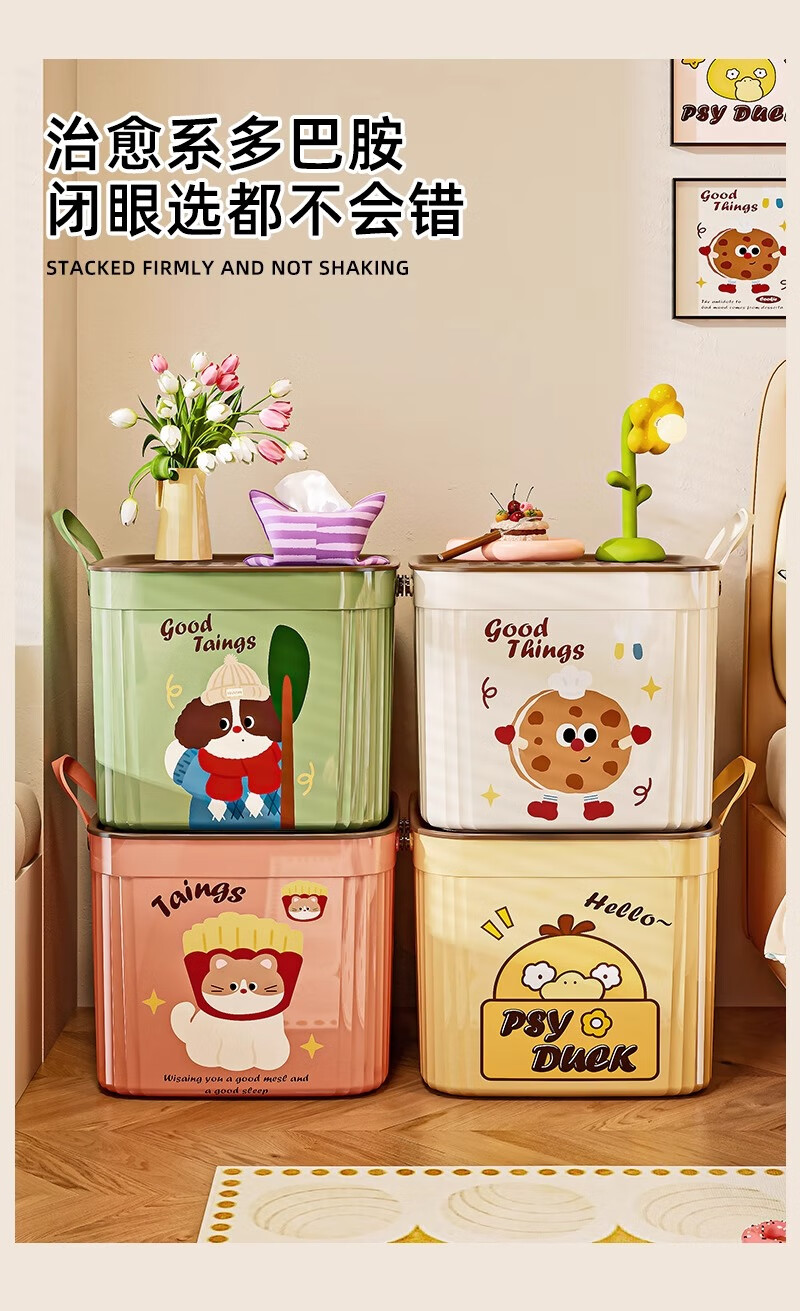 Naming desktop storage box with lid sundry storage box multi-functional snack toy storage basket wardrobe living room cute cartoon square cream cookie-extra large