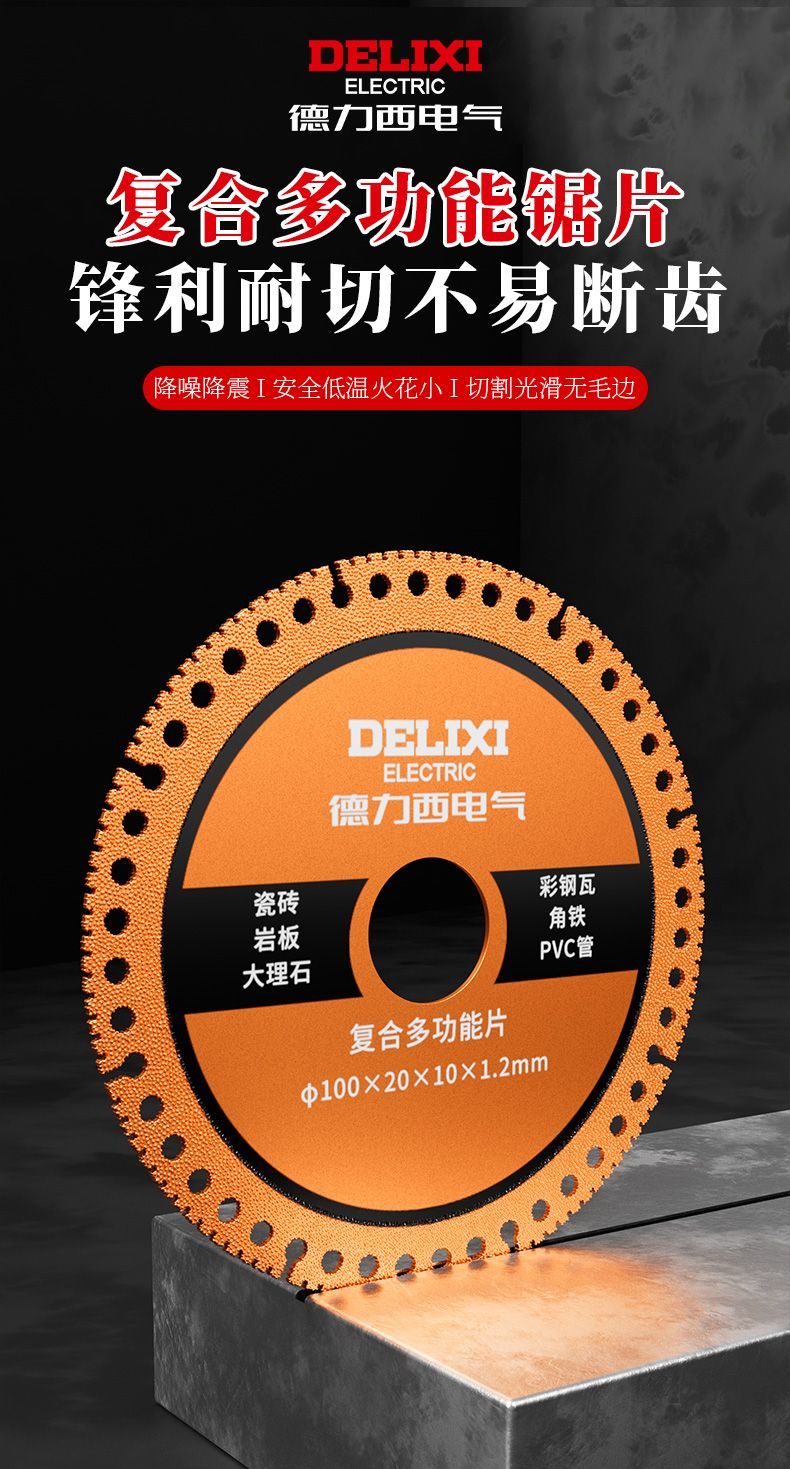 Delixi Electric Cutting Blade Angle Grinder Composite Blade Multifunctional Stainless Steel Metal Angle Iron Diamond Cutting Saw Blade Sharp and Wear-Resistant Industrial Grade Multifunctional Cutting Blade 1 Pack