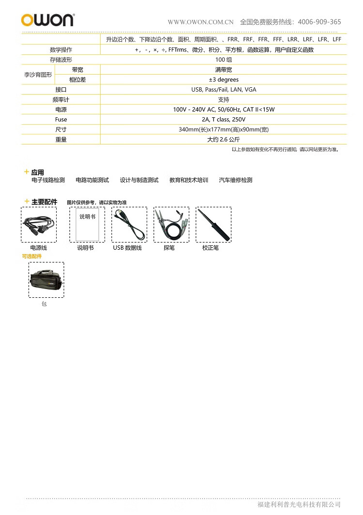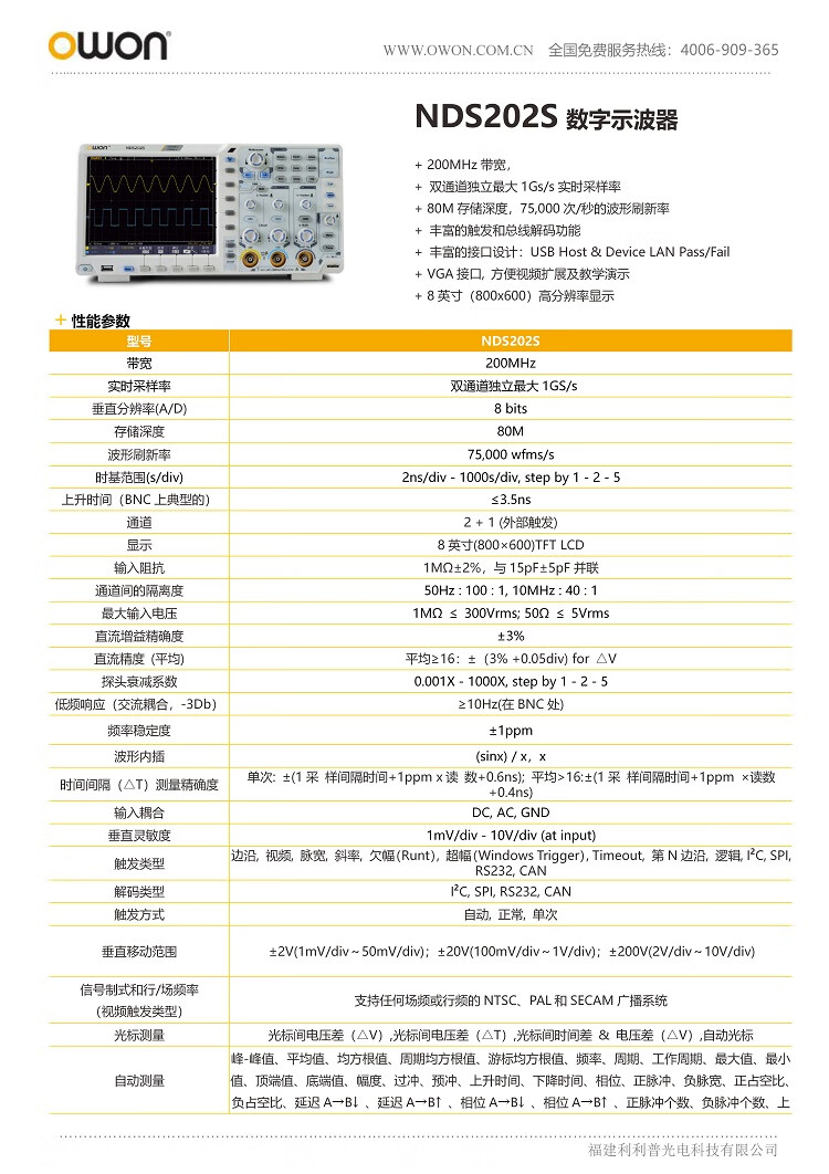 Owon digital oscilloscope dual channel 200MHz bandwidth 1GSa/s sampling rate NDS202S NDS202S