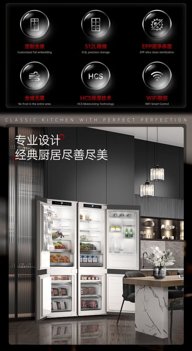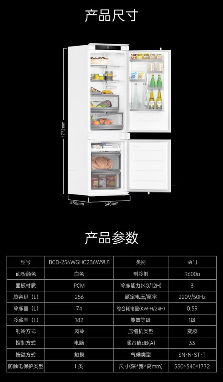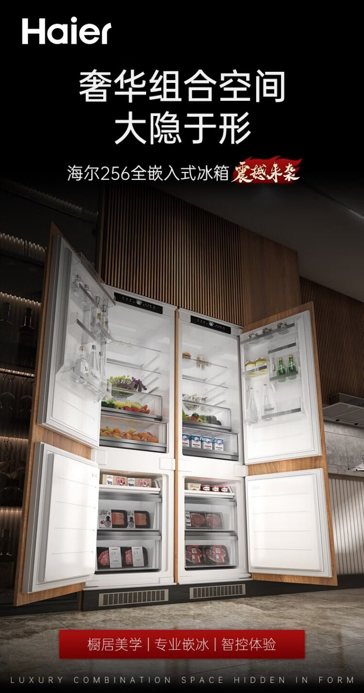 Haier's blockbuster new product fully embedded refrigerator hidden built-in cross-fold ultra-thin double door inlaid cabinet custom refrigerator ultra-thin 256 single fully embedded double door new product single double door