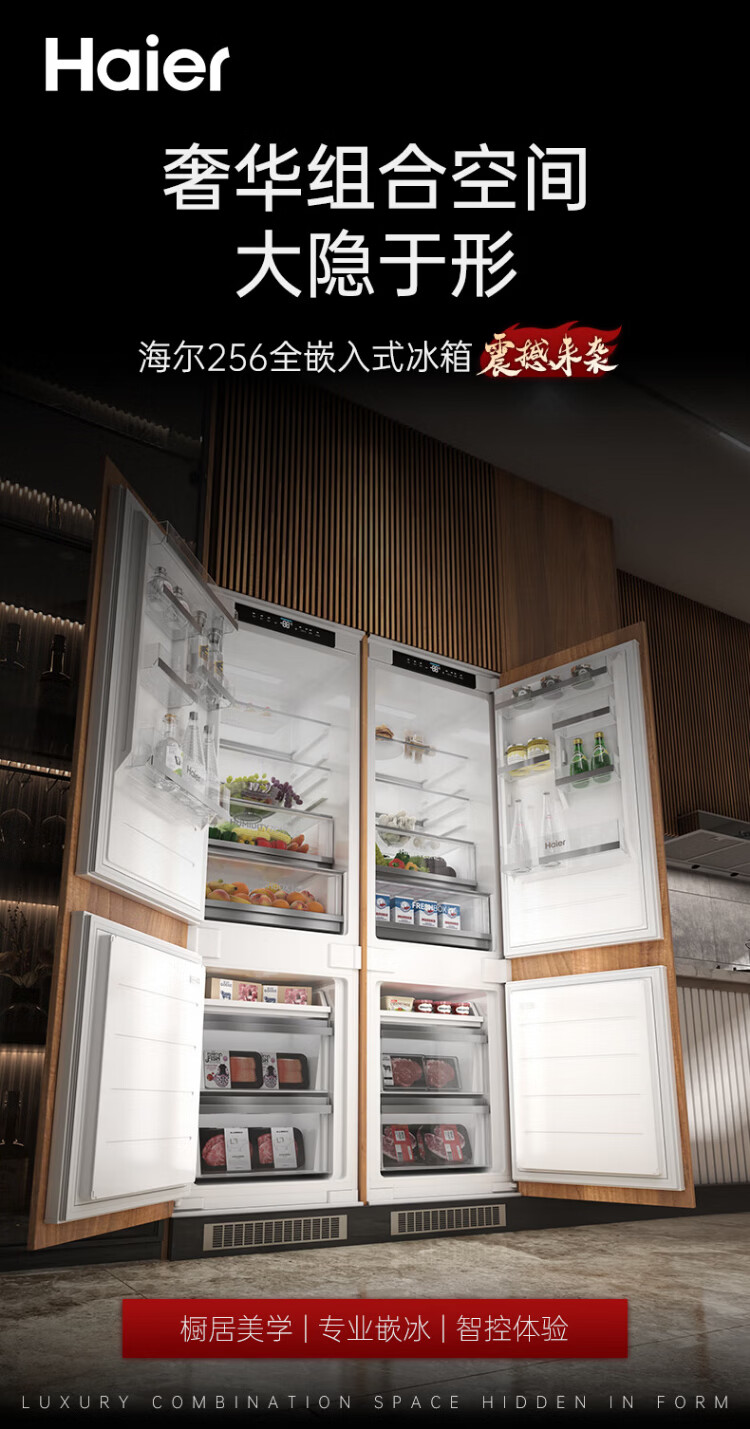 Haier's blockbuster new product fully embedded refrigerator hidden built-in cross-fold ultra-thin double door inlaid cabinet custom refrigerator ultra-thin 256 single fully embedded double door new product combination double door