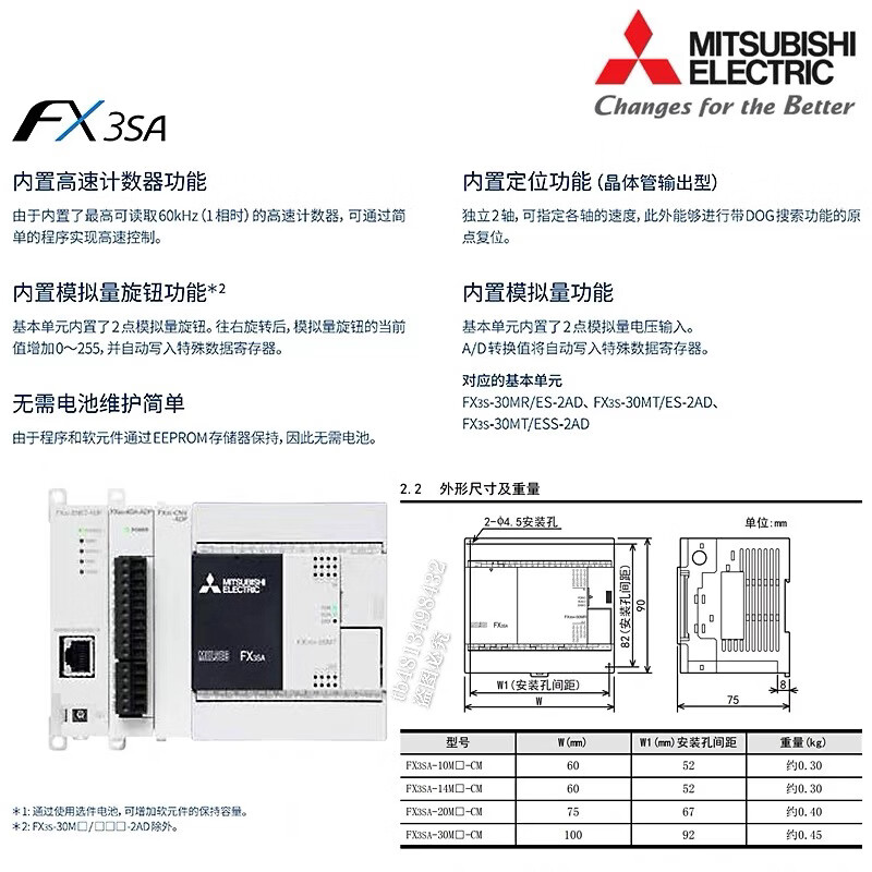 Mitsubishi's new PLC FX3SA 10MR CM 14MR 20MR 30MR MT programmable controller FX3SA-14MR-CM