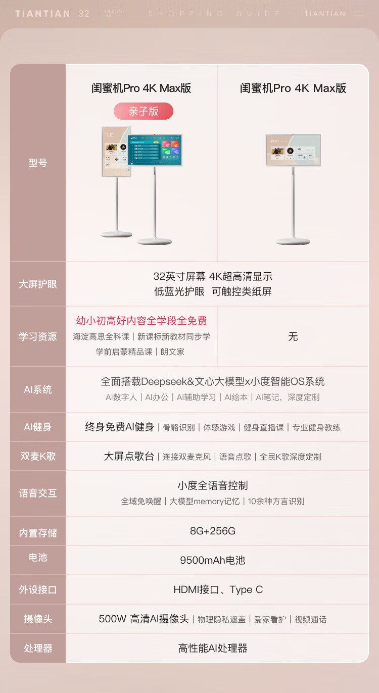 Xiaodu Tiantian Best Friend Phone Pro 4K Max Parent-child Edition Mobile Smart Flat-panel TV 32-inch Large-screen Touch Display TV Drama and Fitness Karaoke Pro 4K Max 32-inch Industry Flagship Close Your Eyes
