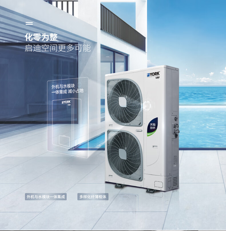 YORK VRF central air conditioner, one to four, one to five, one to three, YES-RM multi-split, two-way supply of natural fluorine hot water, new level of energy efficiency, household energy-saving hot water fresh air air conditioner, large 6 HP, first level energy efficiency, 6.5 HP, one to five, York central air conditioning
