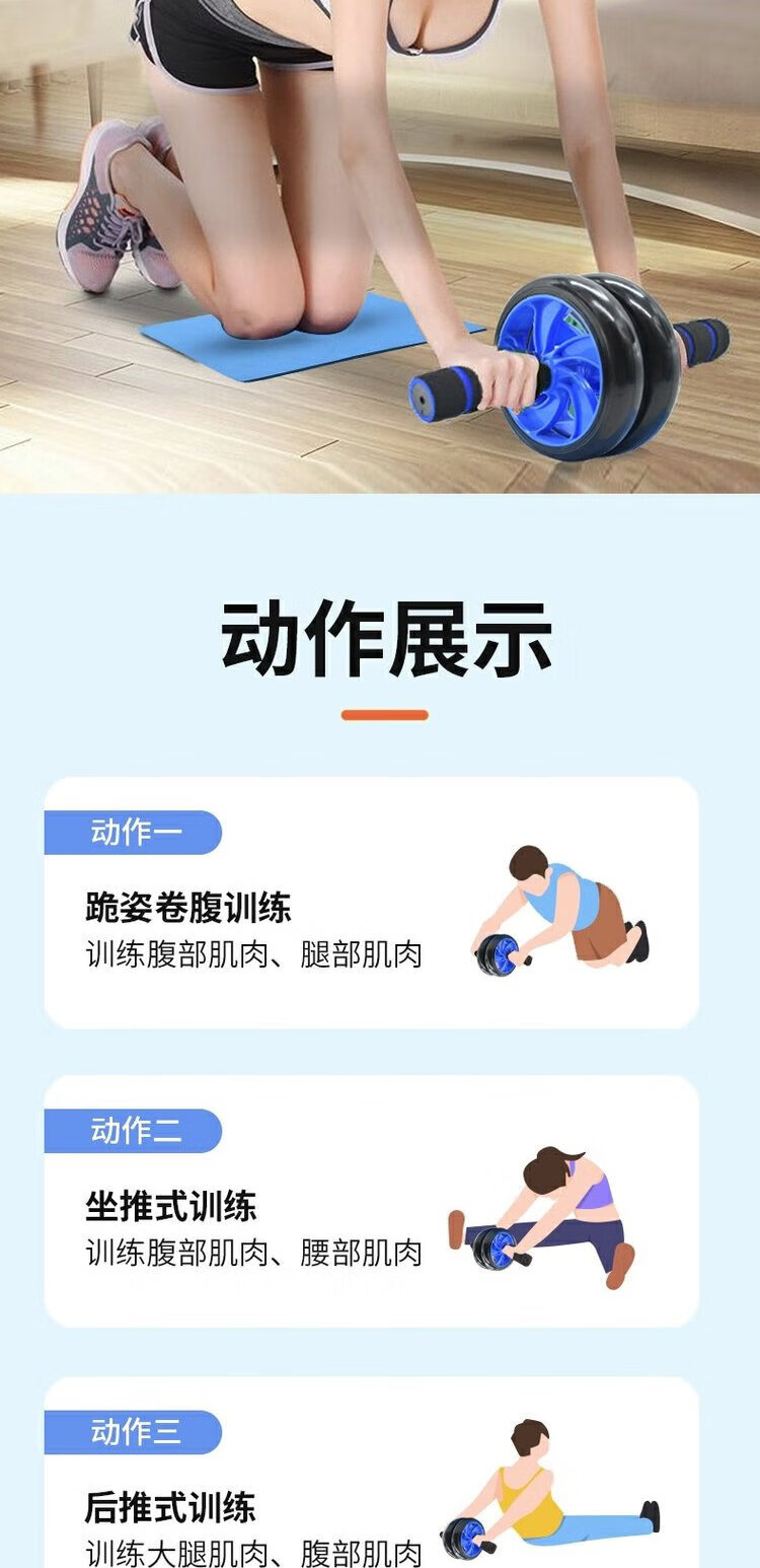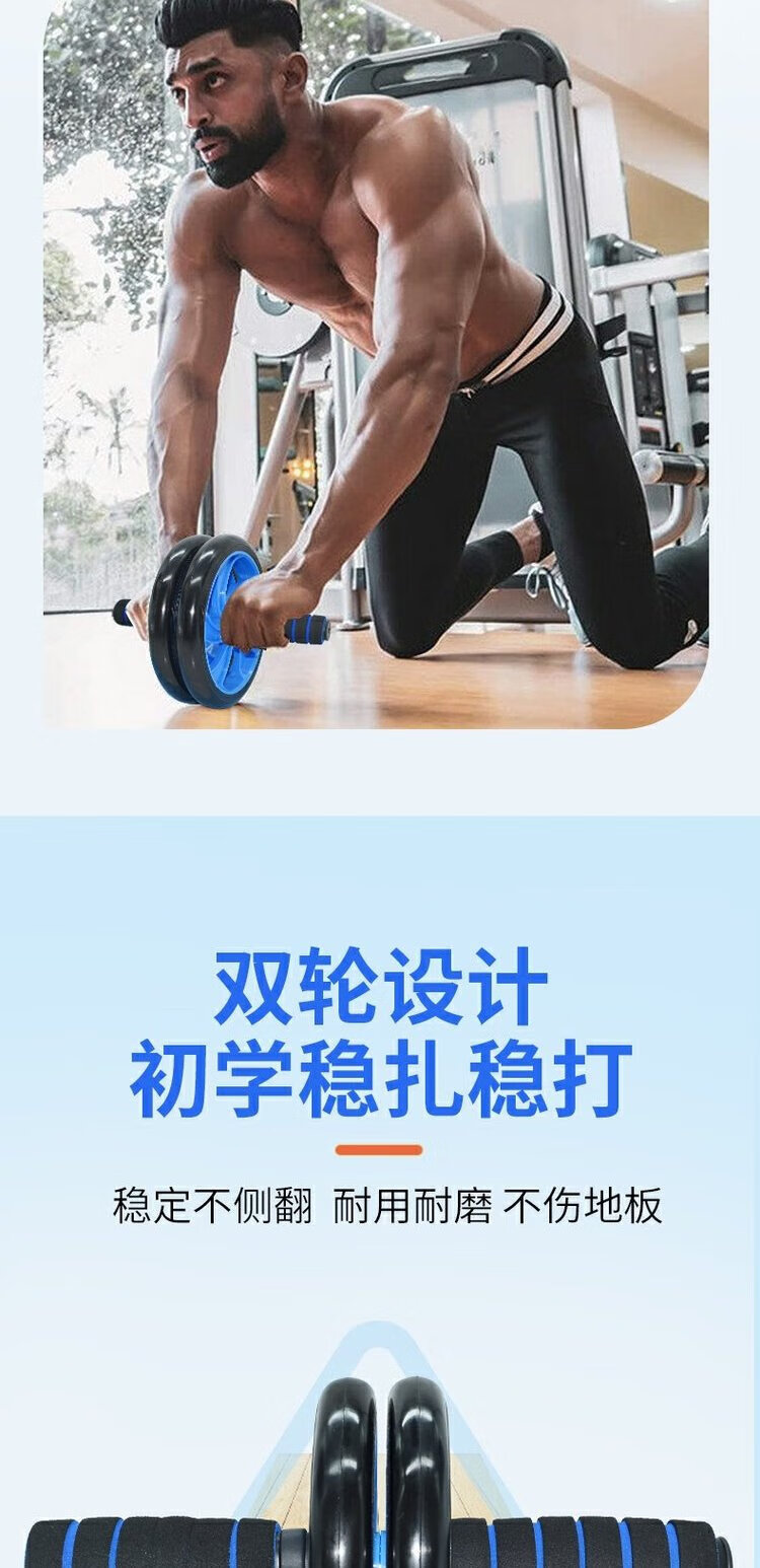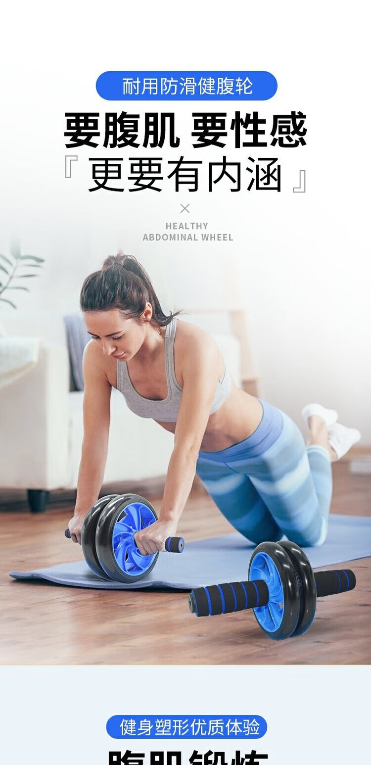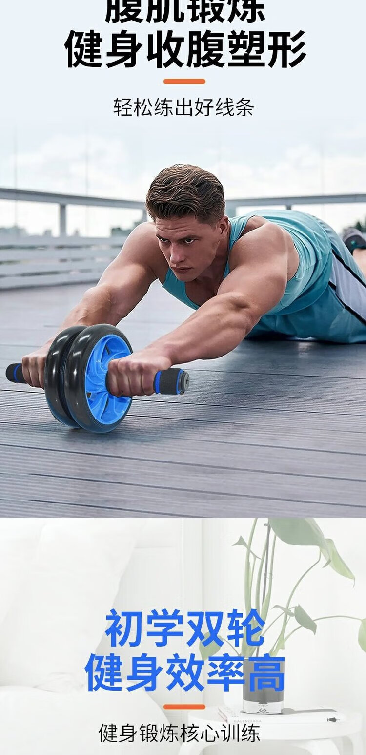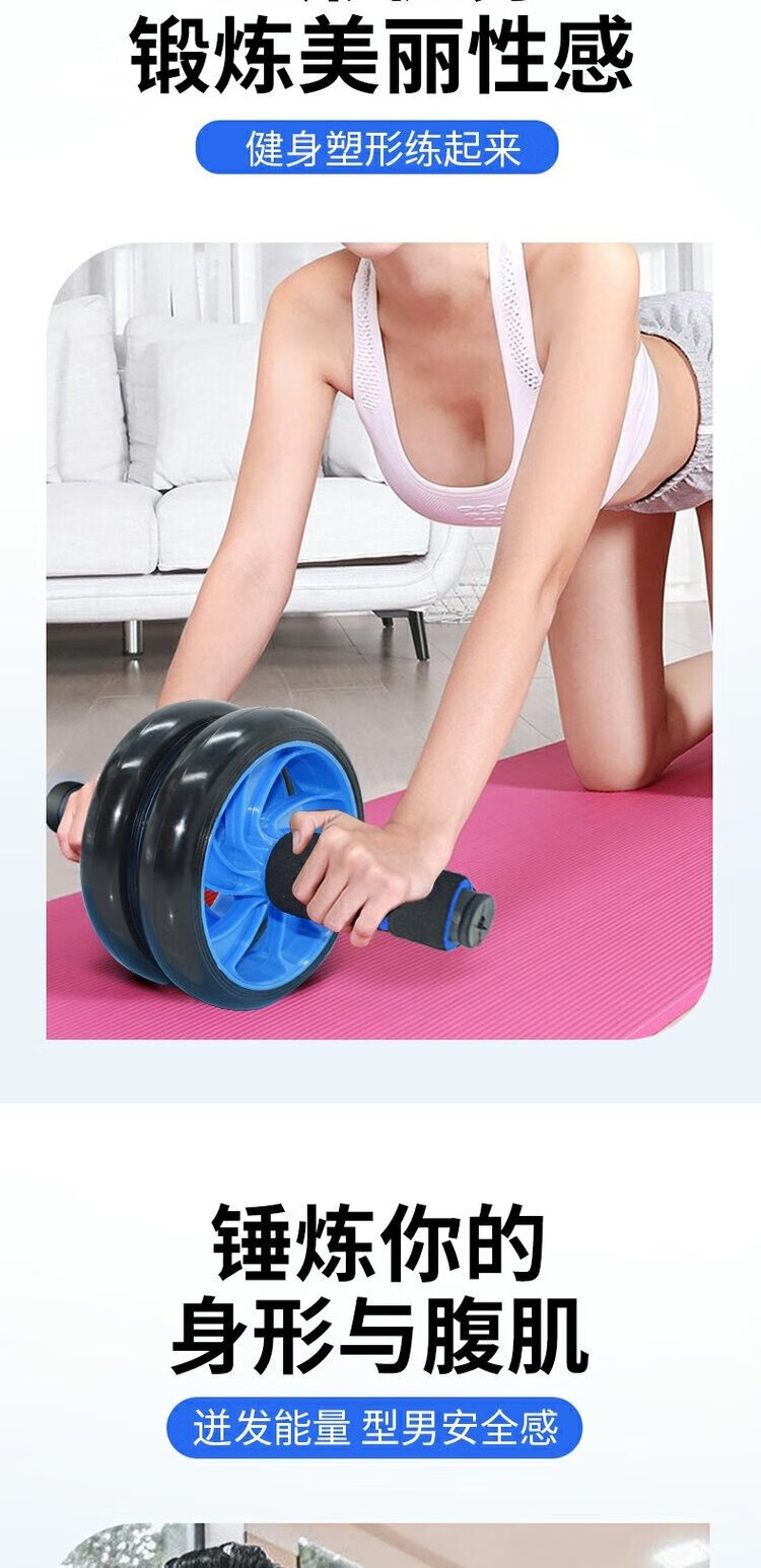 Miaopulejian abdominal wheel men's sports exercise equipment rolling pulley abdominal machine lazy abdominal machine abdominal training home abdominal J101 double wheel blue 14cm without kneeling pad