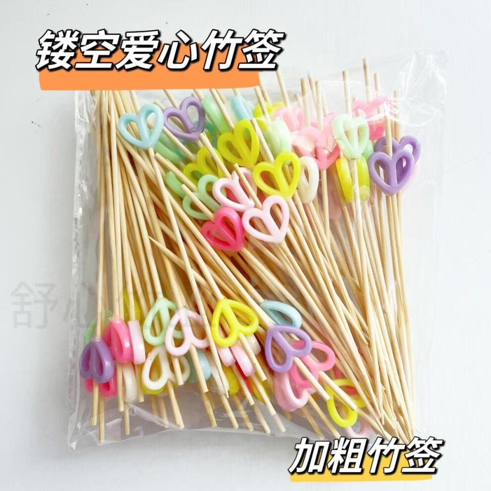 An Junsheng disposable fruit picks for children, cute bamboo picks, burgers, desserts, creative toothpicks, candied haws cocktails, 12cm hollow hearts, 100 pieces