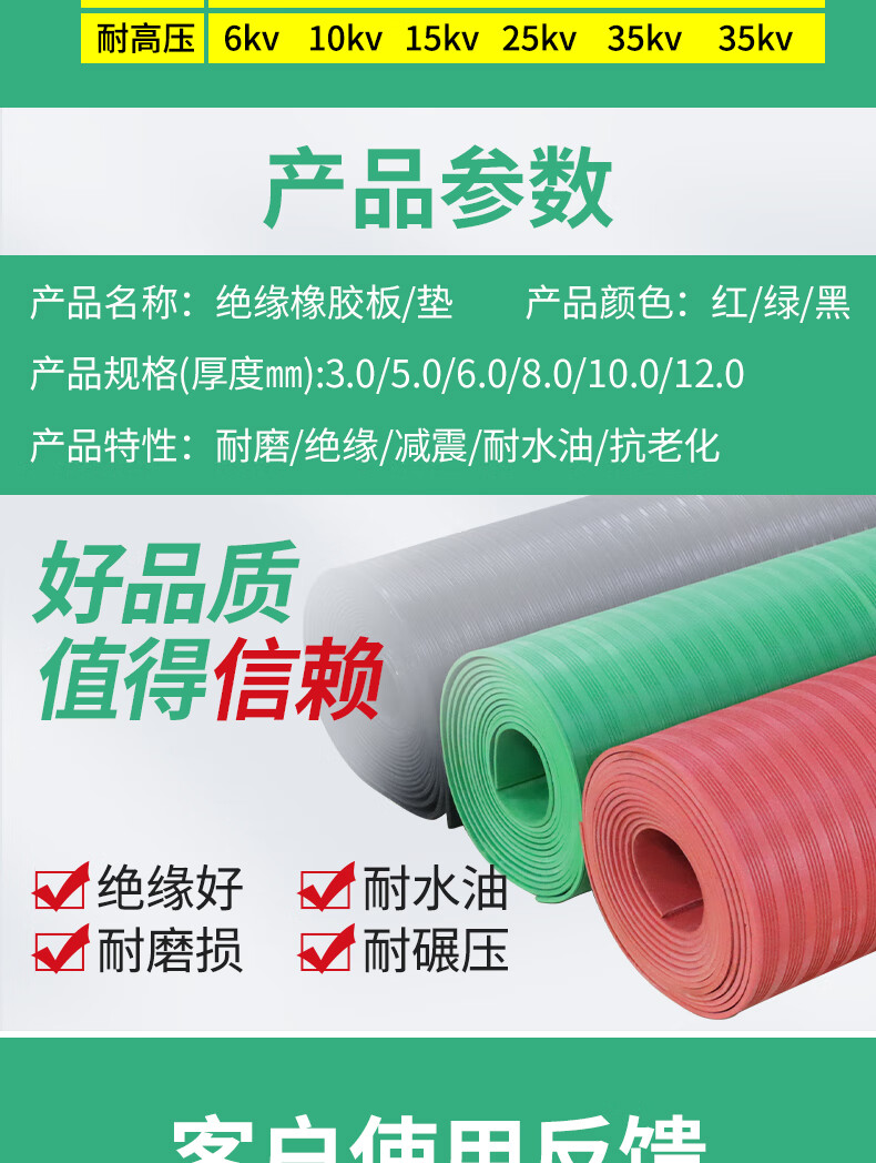 Insulation mat power distribution room 10kv high voltage distribution cabinet insulation carpet floor mat non-slip anti-electricity rubber sheet insulating rubber pad upgraded version 3mm 1m*5m green stripe voltage resistance 6kv