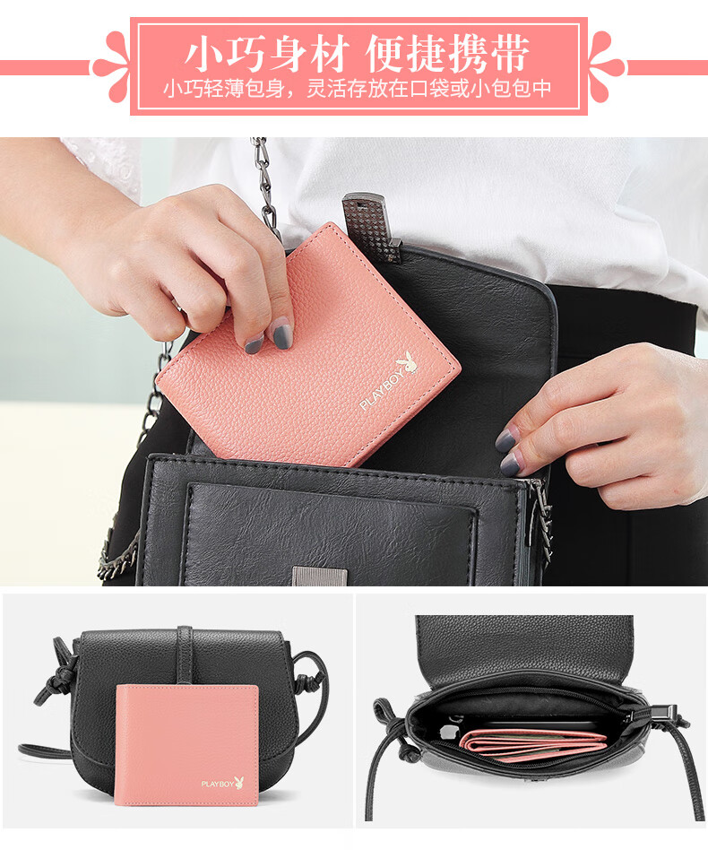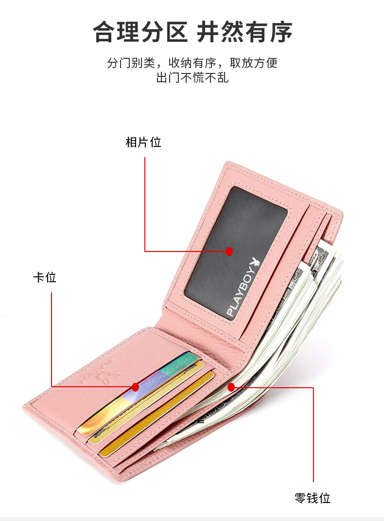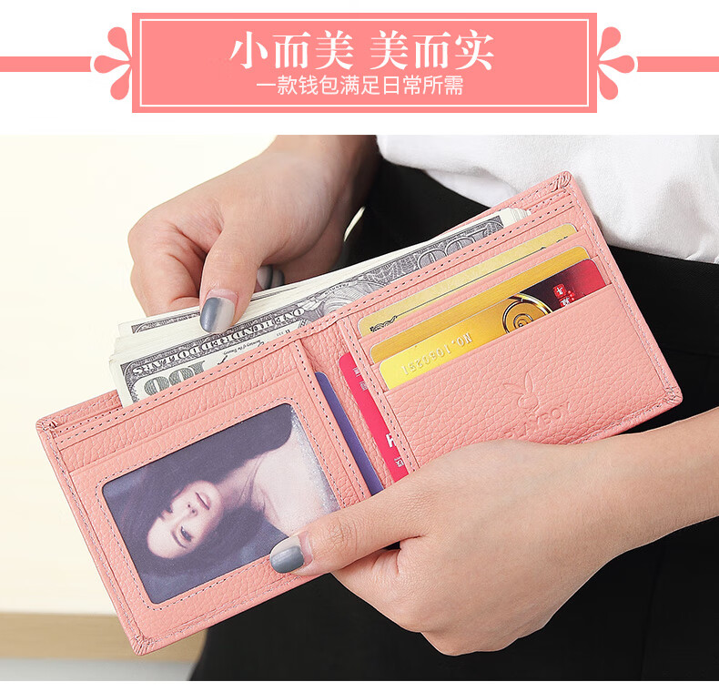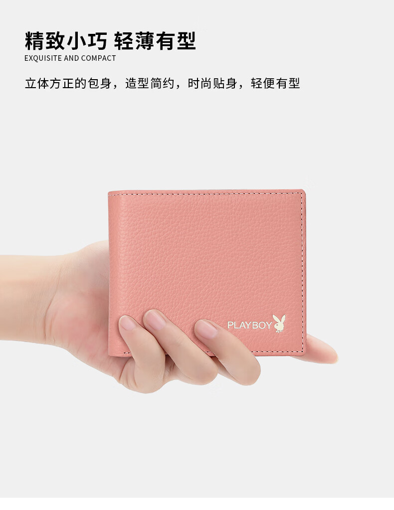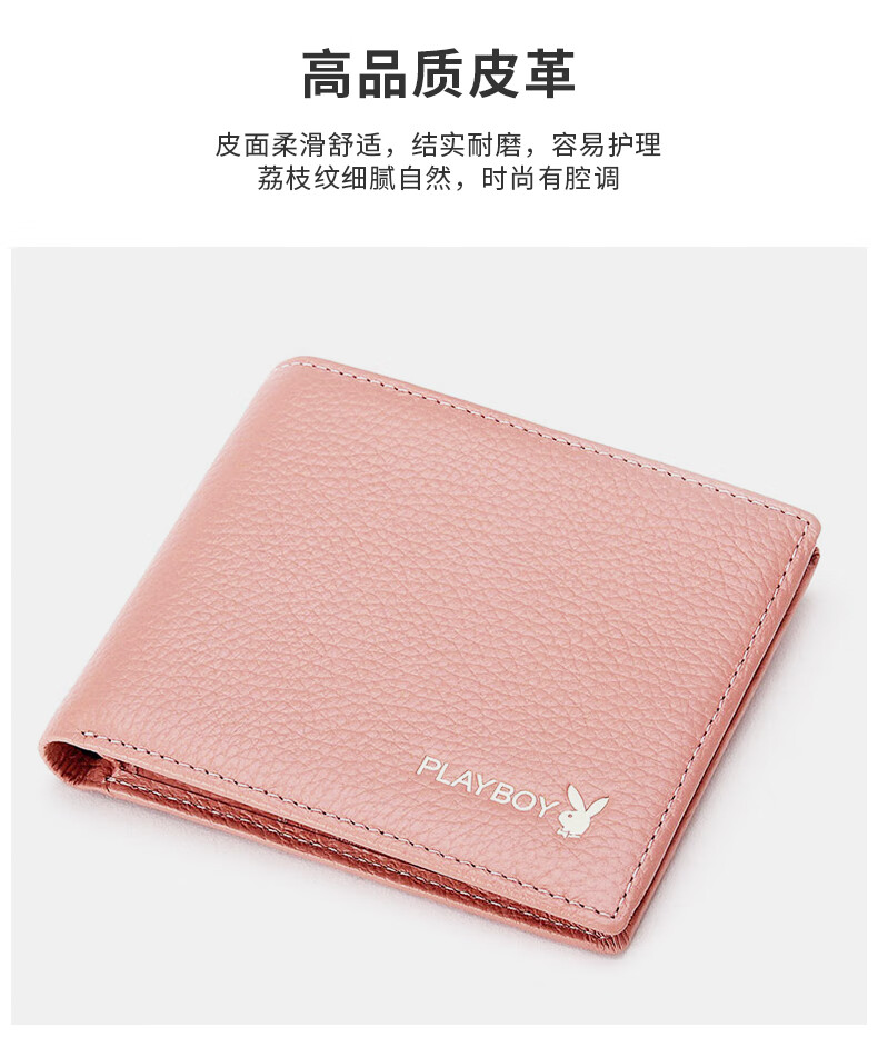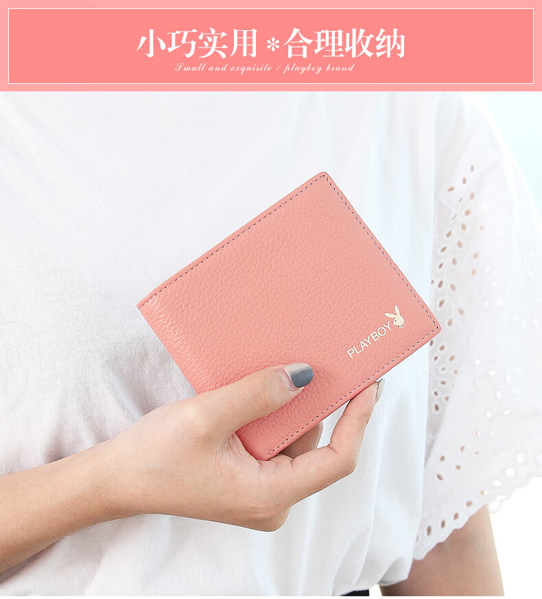 Playboy (PLAYBOY) New Wallet Women's Short New Genuine Leather Small Coin Purse Simple Student Folding Wallet Women Pink