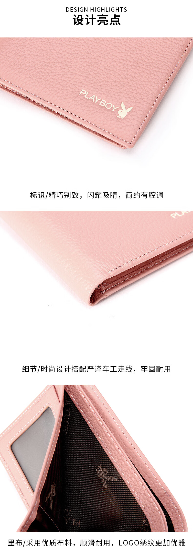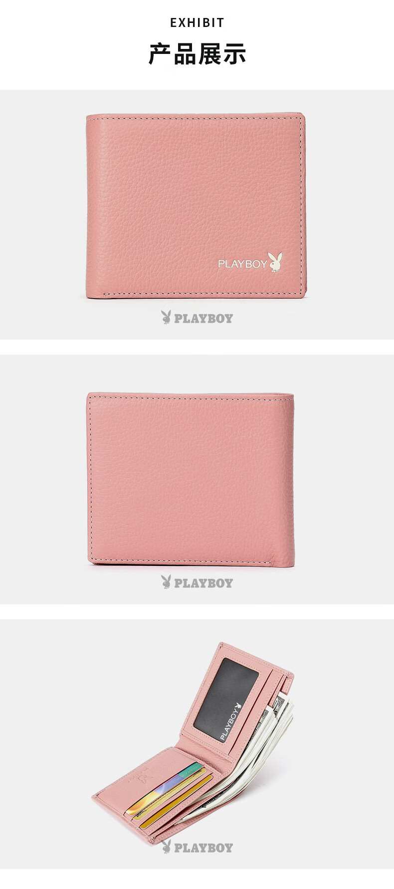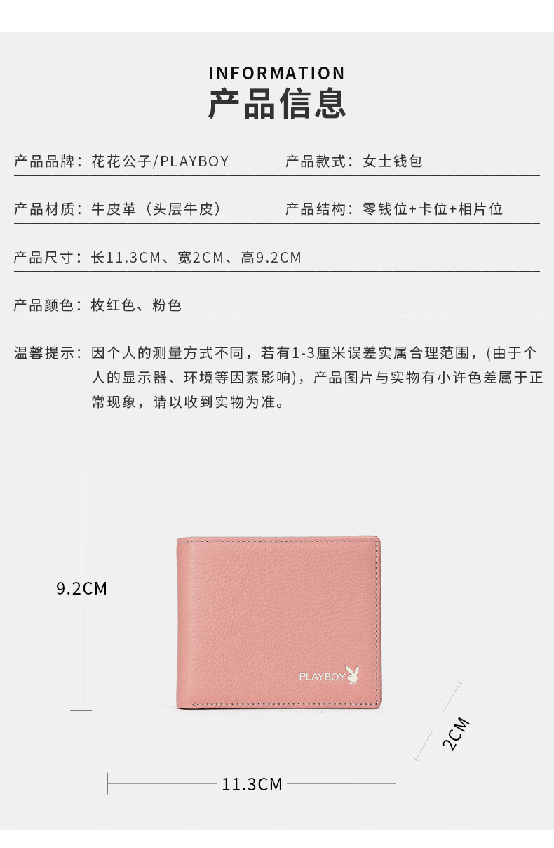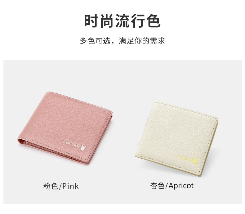 Playboy (PLAYBOY) New Wallet Women's Short New Genuine Leather Small Coin Purse Simple Student Folding Wallet Women Pink