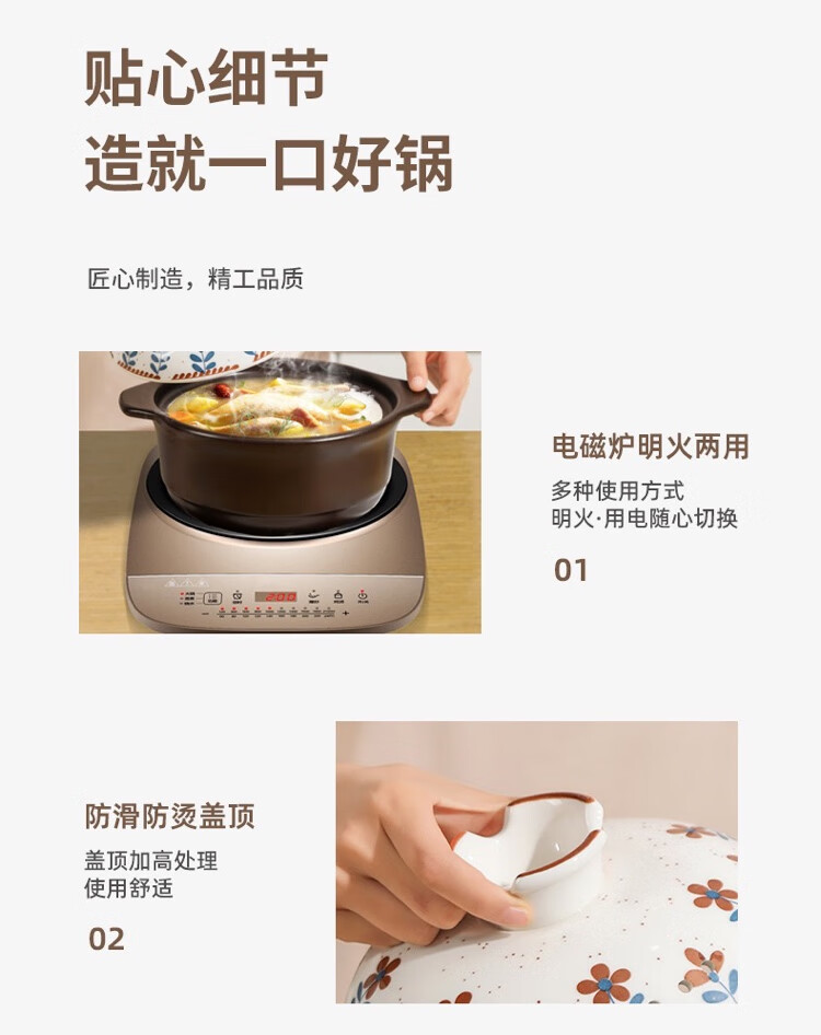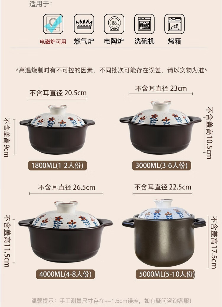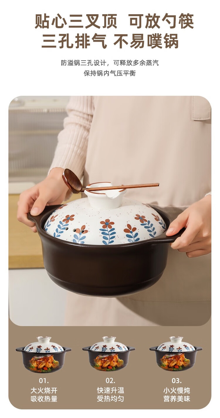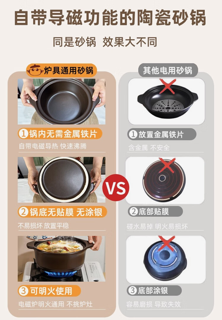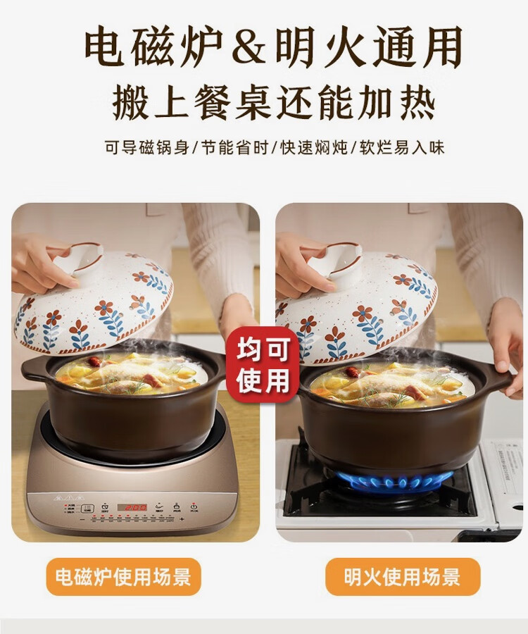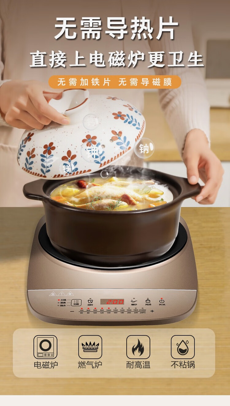 Induction cooker casserole for household soup making, commercial open flame gas stove for general use, no need for heat conductor, induction cooker for open flame general use (1-3 people) 3L