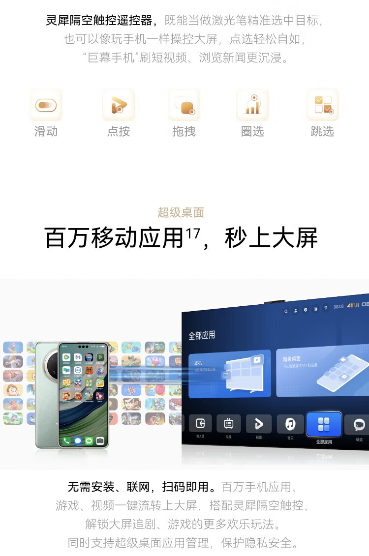 Huawei TV Smart Screen Vision 5 75-inch Hongmeng AI Smart Search Story MateTV Same Origin S MiniLED Ultra-thin Mural Flat-panel TV 75-inch Microphone Karaoke Package Vision5 75