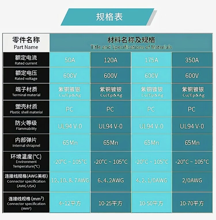 Anderson plug lithium battery charging connector pin number high power male and female connector 50A parking air conditioning plug Anderson 50 cm with a 3 vertical pin number 30 cm