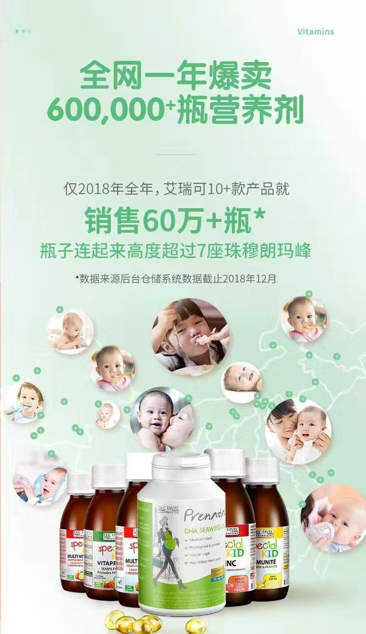 ERIC FAVRE France Ericfavre Eric dha Eric infants and young children 3 to 6 years old baby dha algae oil 60 tablets Eric children's DHA 1 bottle trial pack