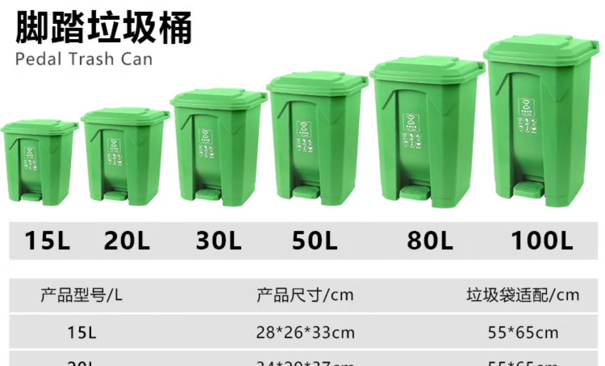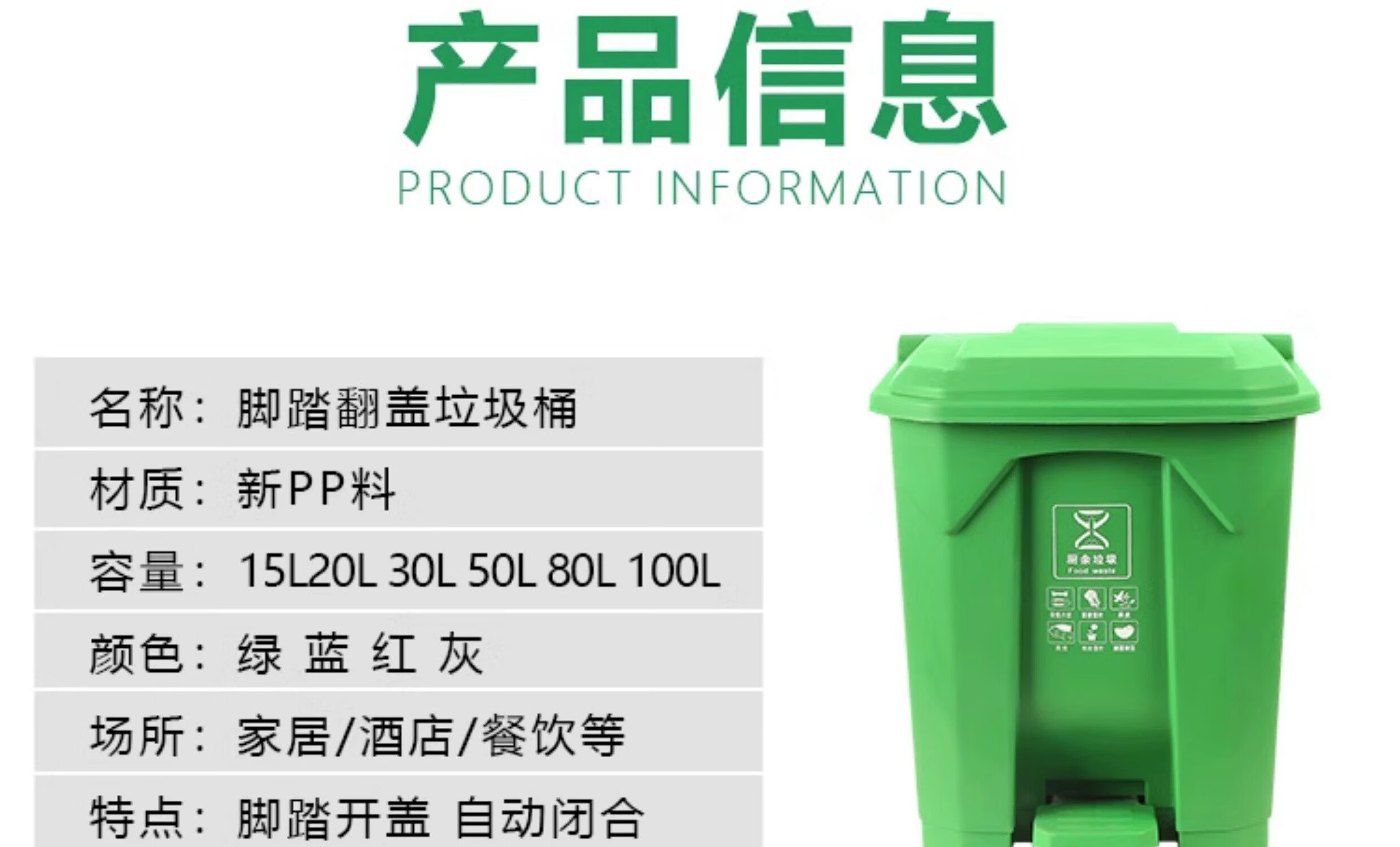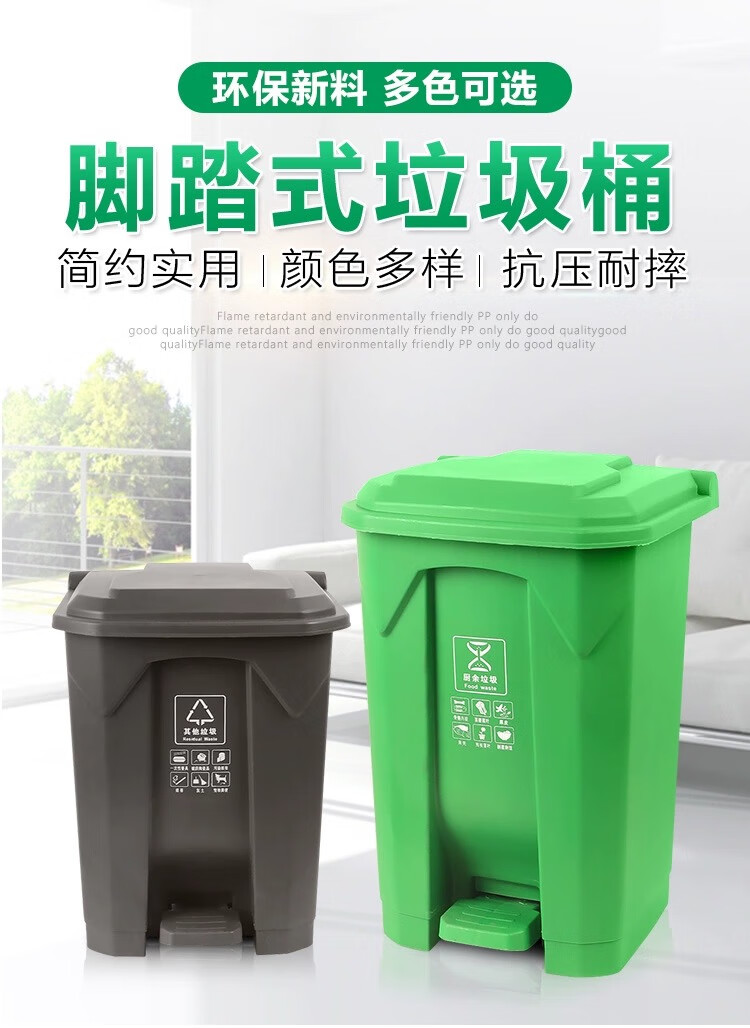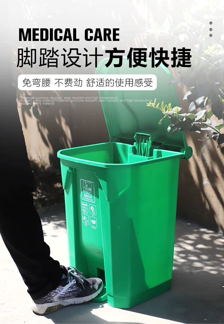 Senser trash can classification commercial property foot-operated with lid large large capacity indoor and outdoor office outdoor hotel school trash can green (food waste) 100 liters