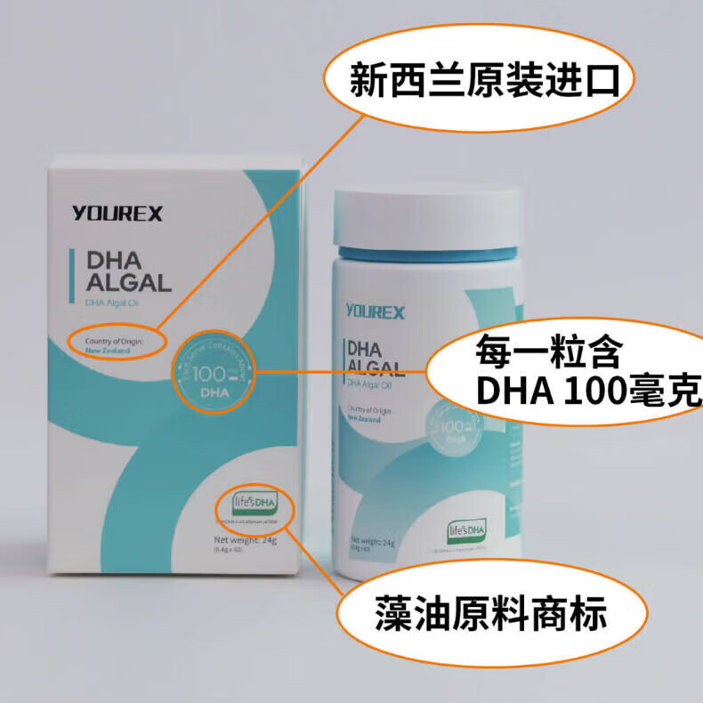 Yourex Yourex New Zealand imported Yourex DHA algae oil and flaxseed oil 60 capsules/bottle, one box (0.4g*60 capsules) anti-counterfeiting checkable