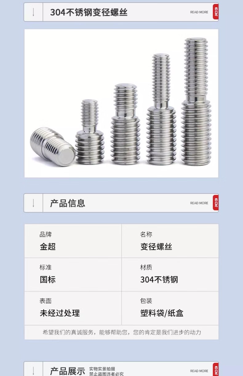 Jinchao 304 stainless steel conversion screw variable diameter head bolt reducing screw MM4M5M6M8M10 to 12 to M16 M10*25mm to M14*25mm (1 inner hexagon)
