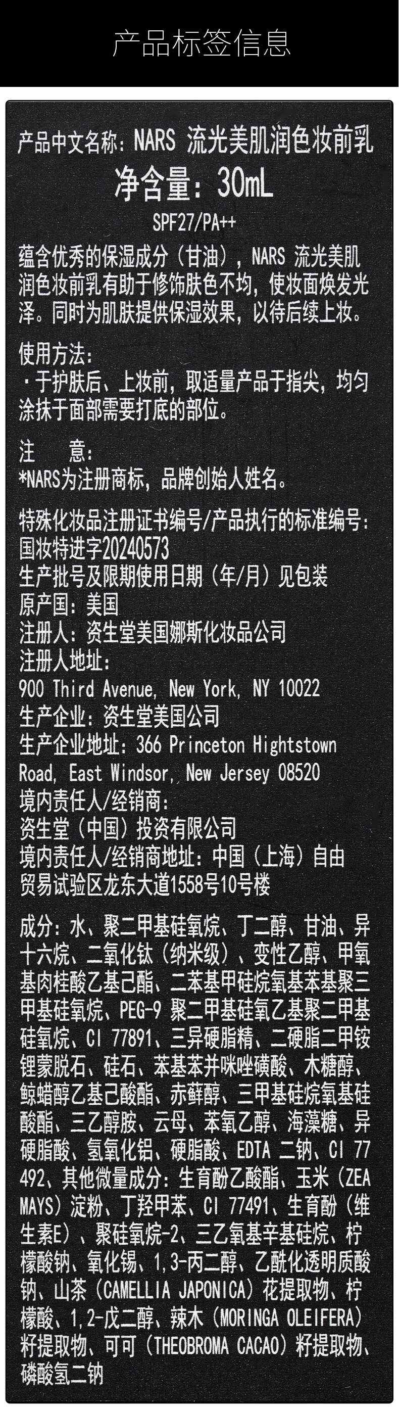 NARS Dabai Isolation Makeup Primer Brightening Moisturizing Makeup Base Makeup Cream New Year's Gift 30ml