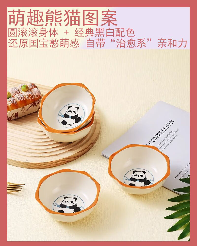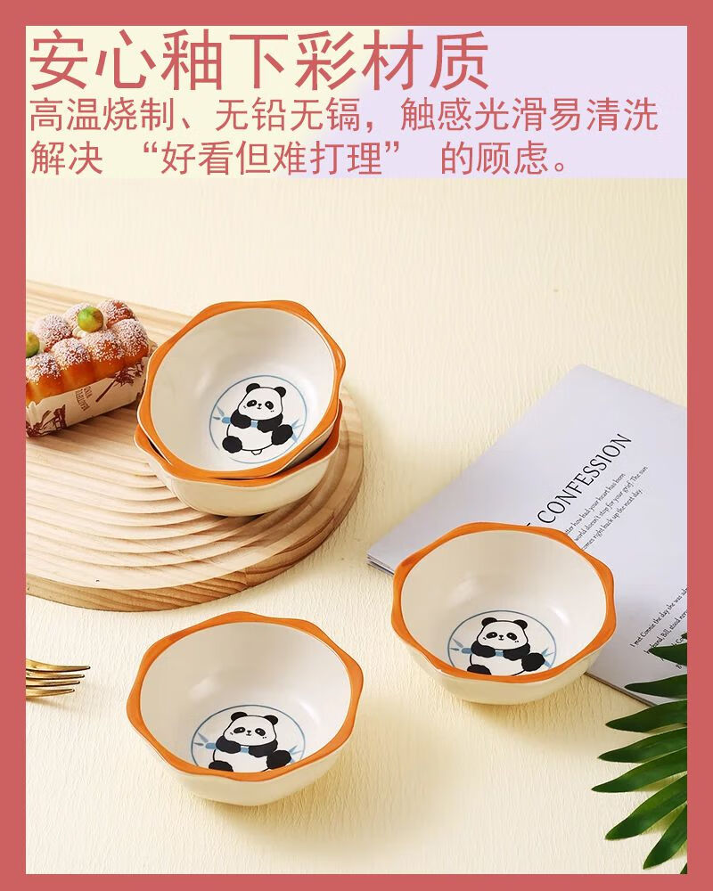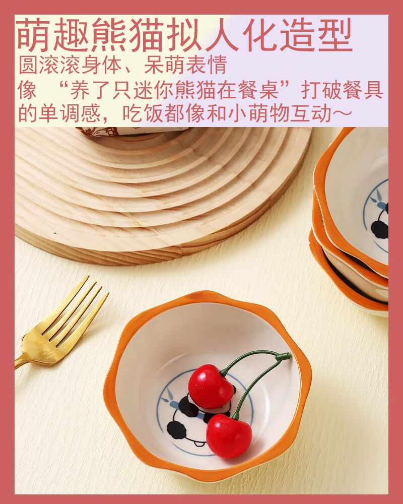 Household underglaze color internet celebrity cute style cream style cute panda polygonal dipping dish small flavor dish 1 pack