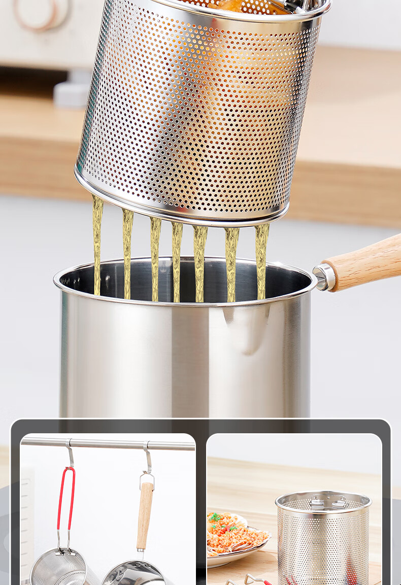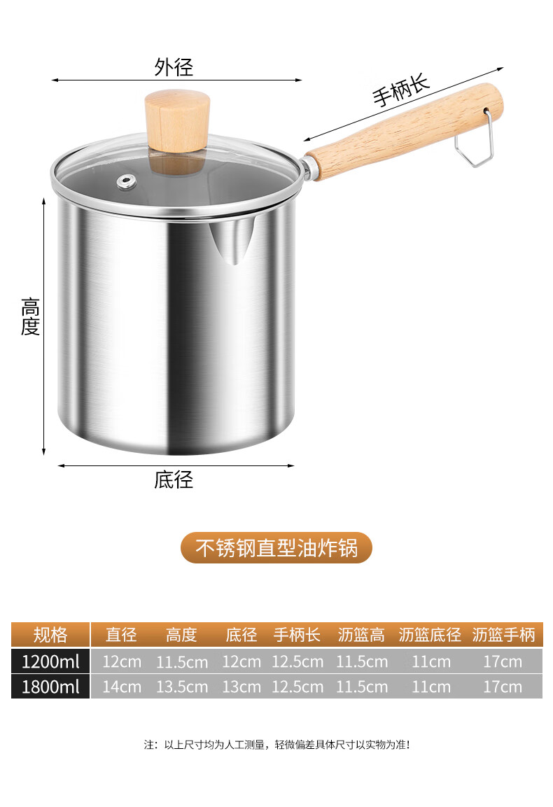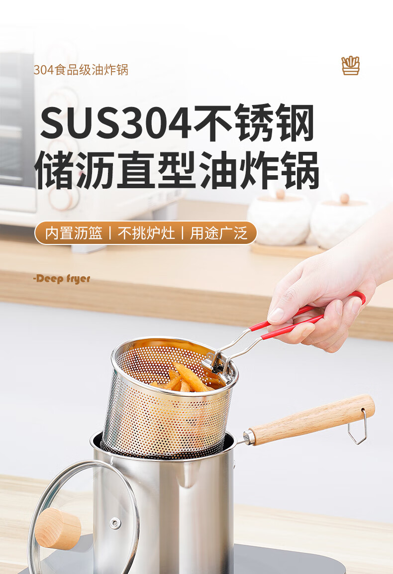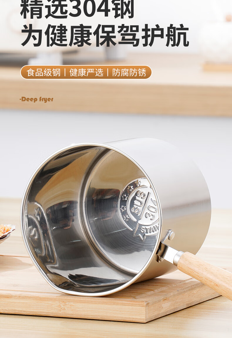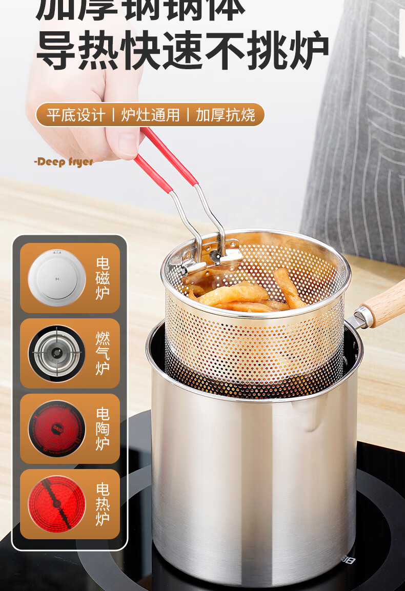 304 stainless steel household special small pot mini fryer fuel-saving design multi-functional gas universal pot 304 fryer + drain basket + lid 14cm 1800ml