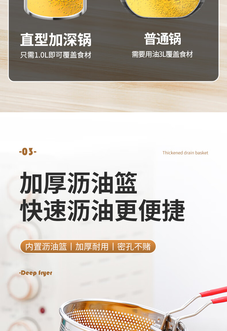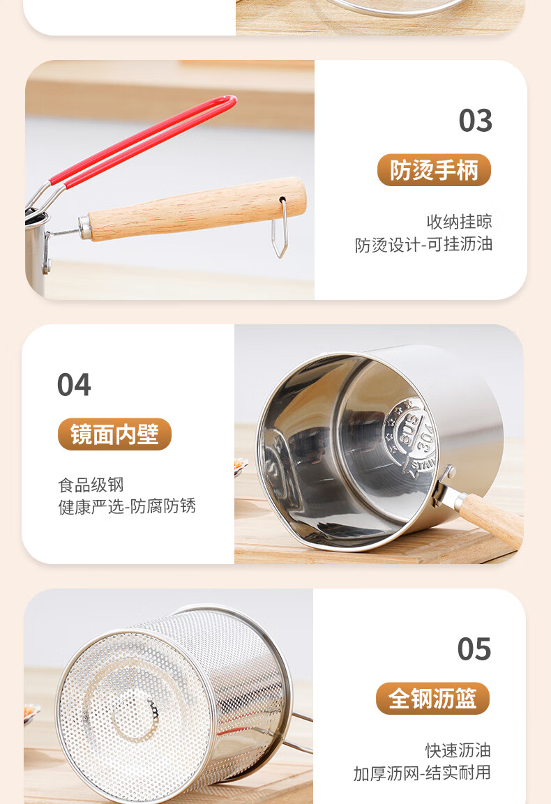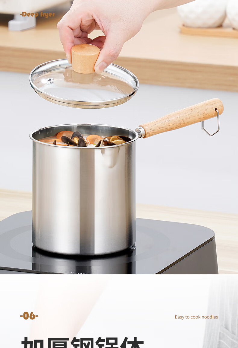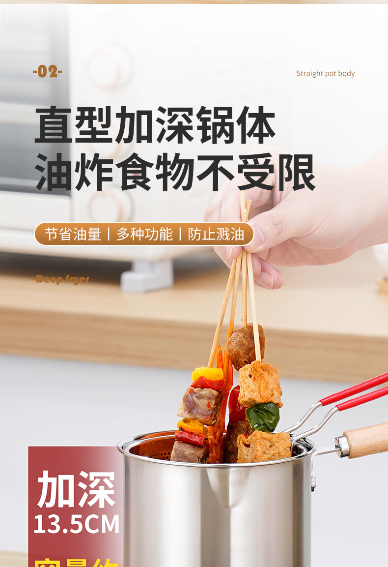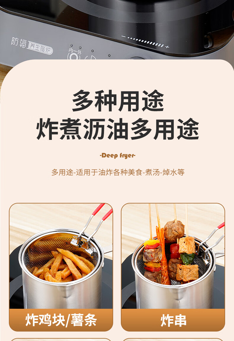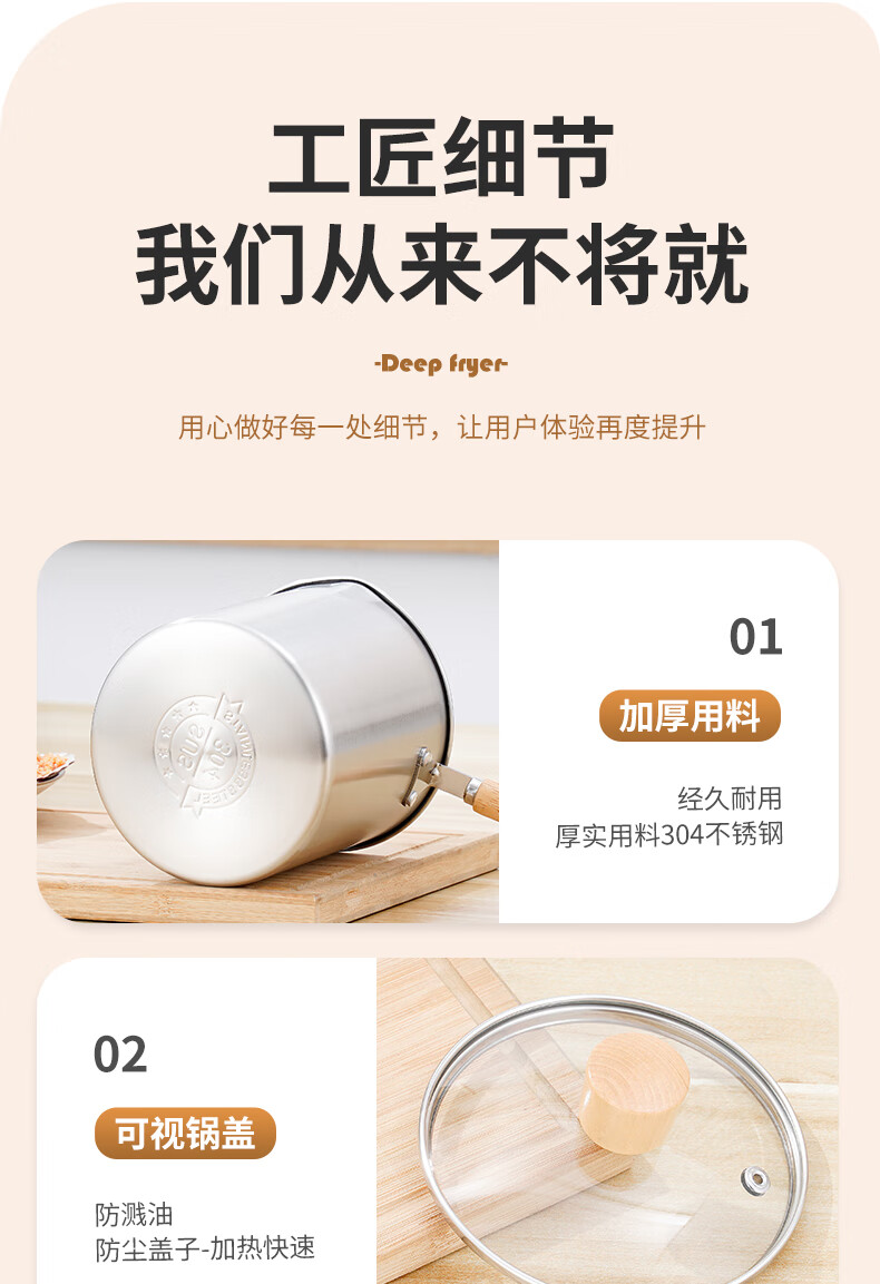 304 stainless steel household special small pot mini fryer fuel-saving design multi-functional gas universal pot 304 fryer + drain basket + lid 14cm 1800ml
