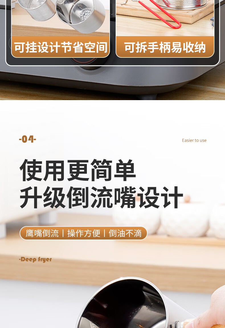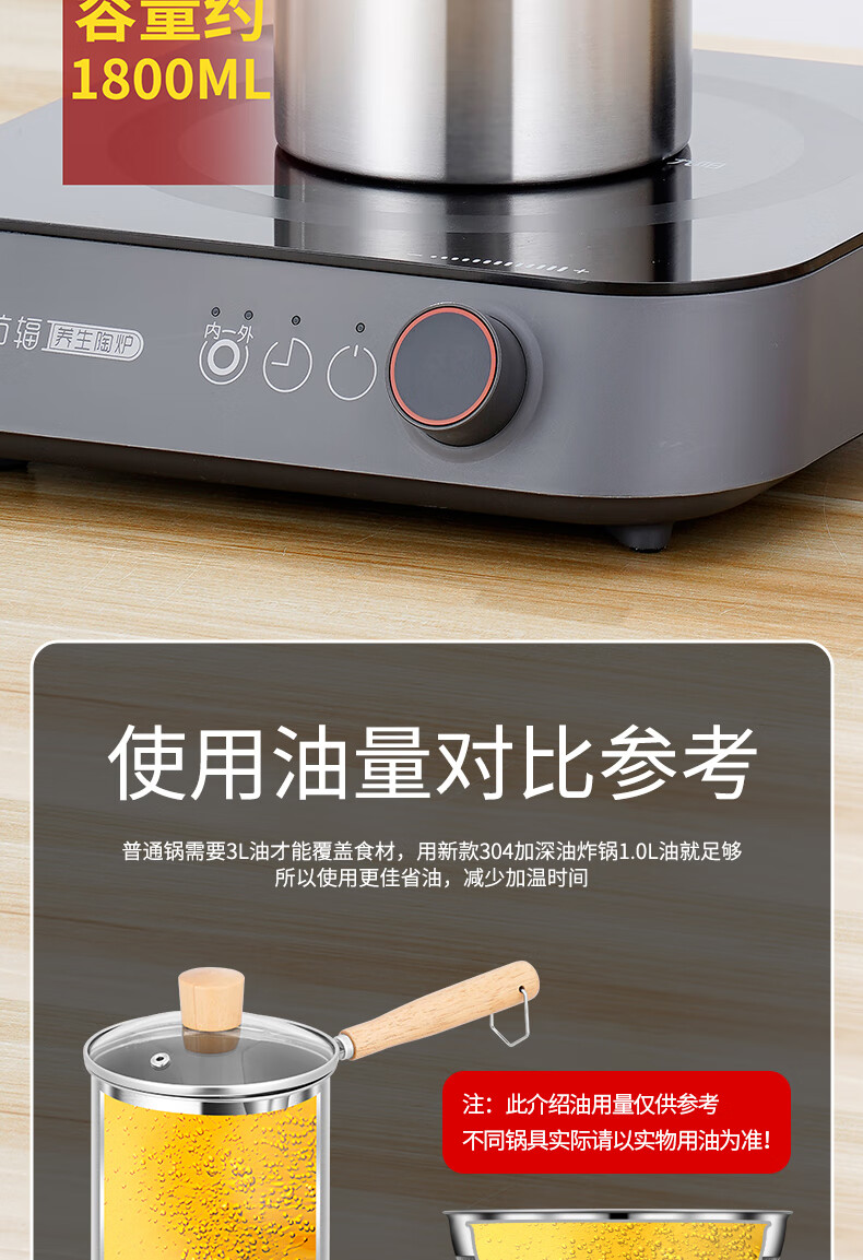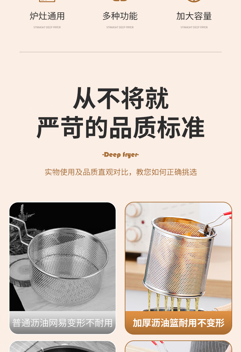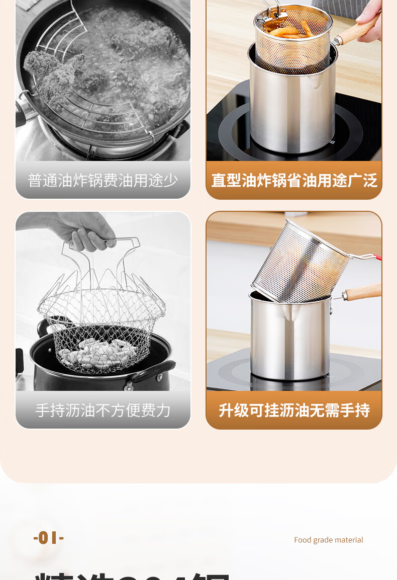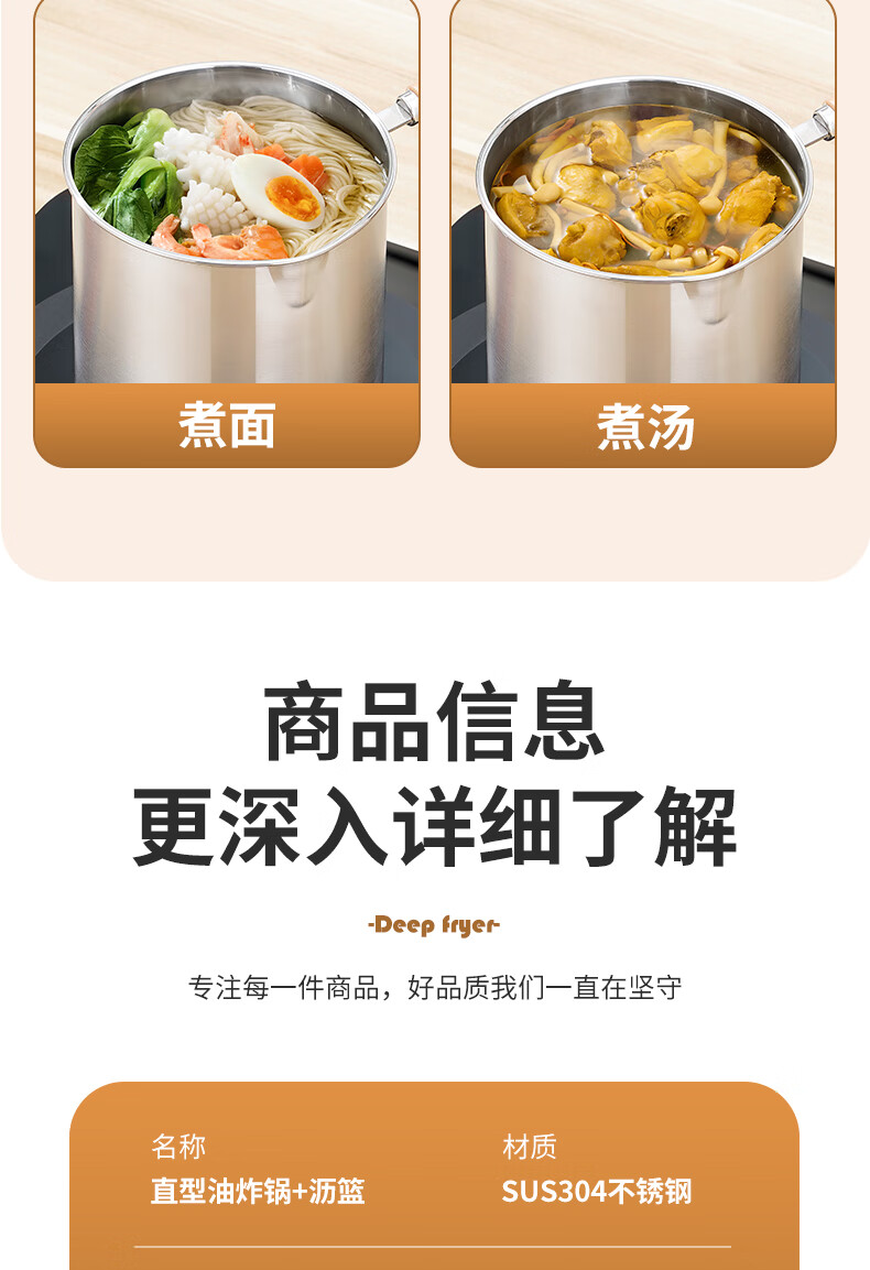 304 stainless steel household special small pot mini fryer fuel-saving design multi-functional gas universal pot 304 fryer + drain basket + lid 14cm 1800ml