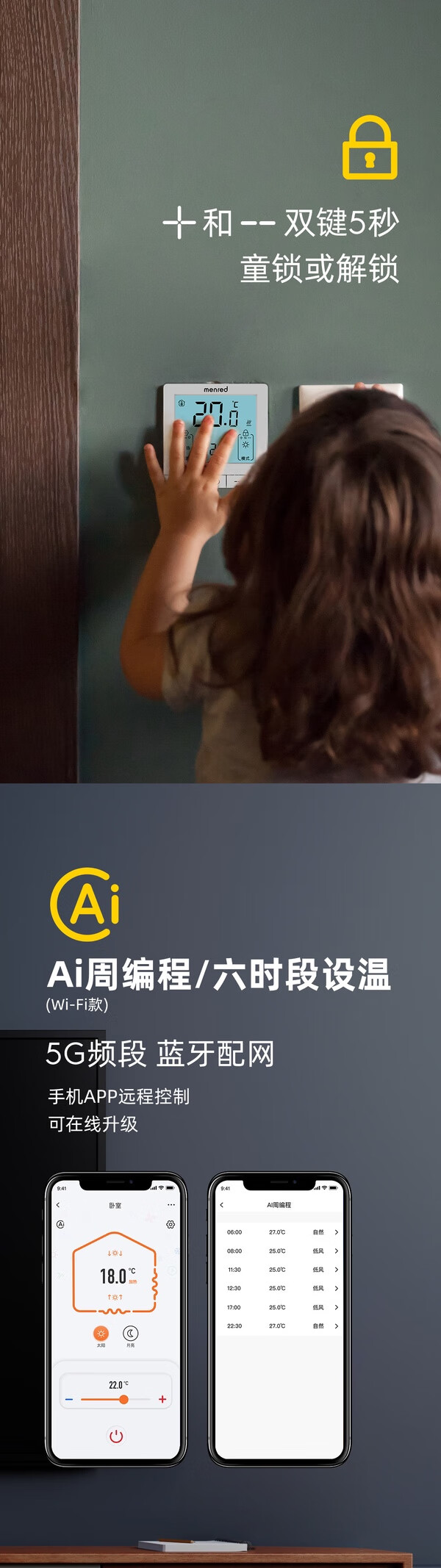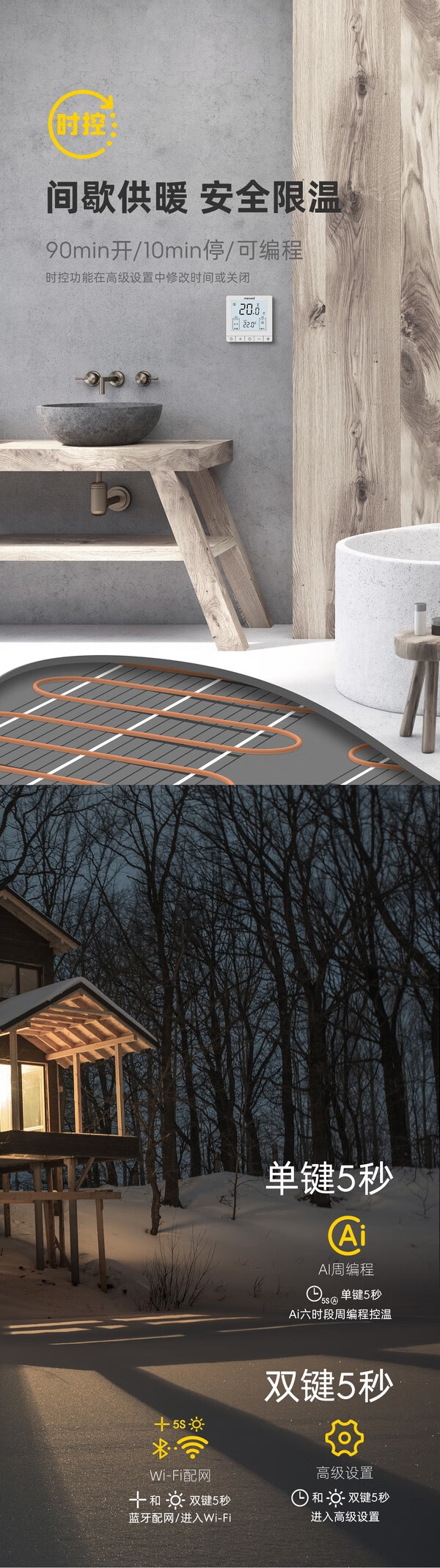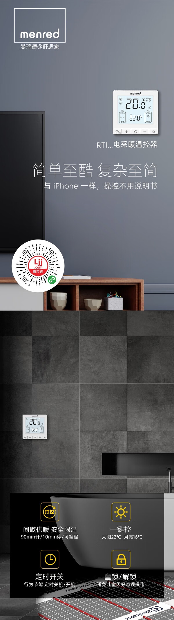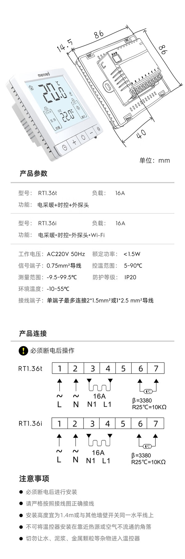 Manred electric floor heating thermostat t space-time RT1.36i with wifi mobile phone control 16A with probe RT1.36i electric heating 16A+wifi