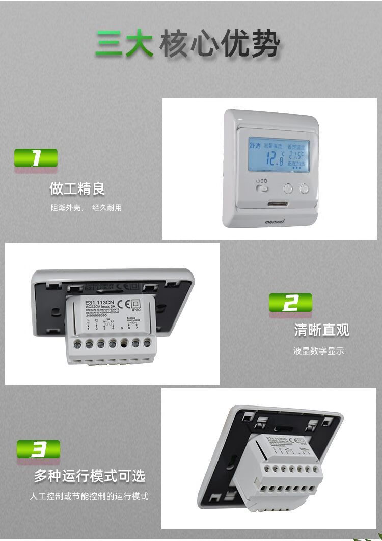 Manred E51 floor heating thermostat water floor heating electric floor heating wall-mounted furnace electric heating film switch panel E31.116 electric heating thermostat