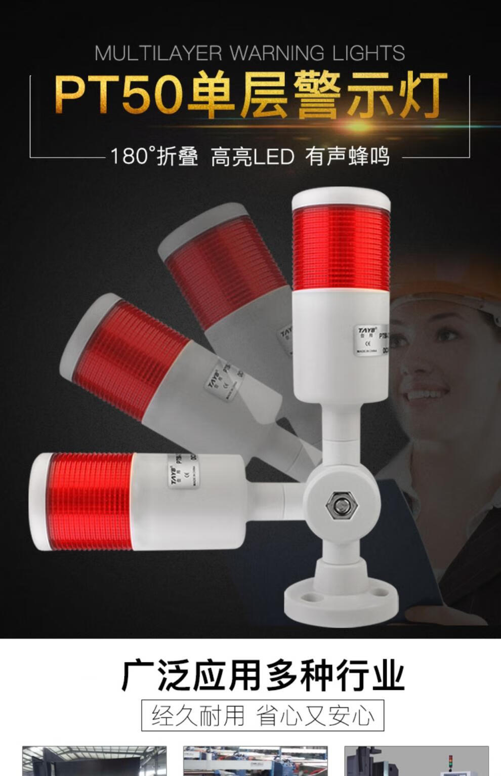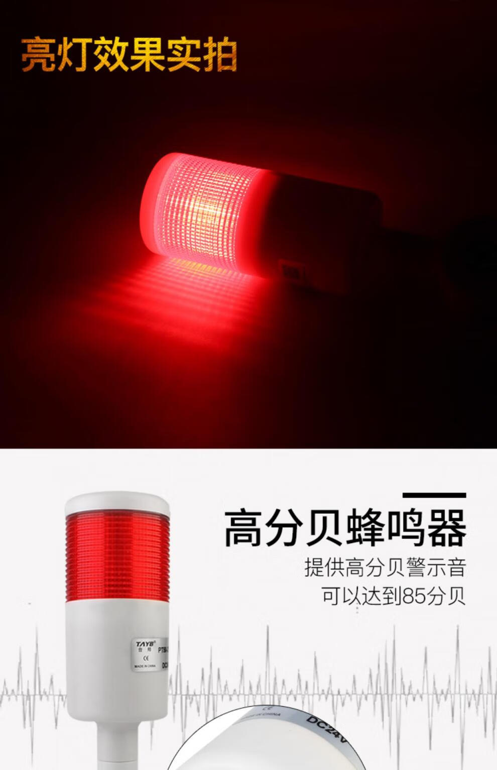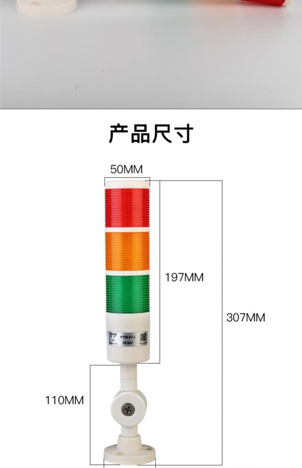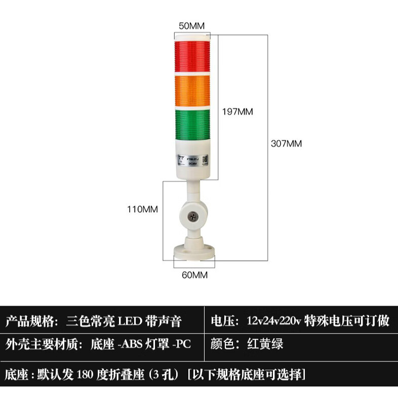 Taibang warning light single double three-color LED multi-layer signal 2T1T machine tool tower light folding 220V24 PT50-3T-J 24V (three-color always on with sound)